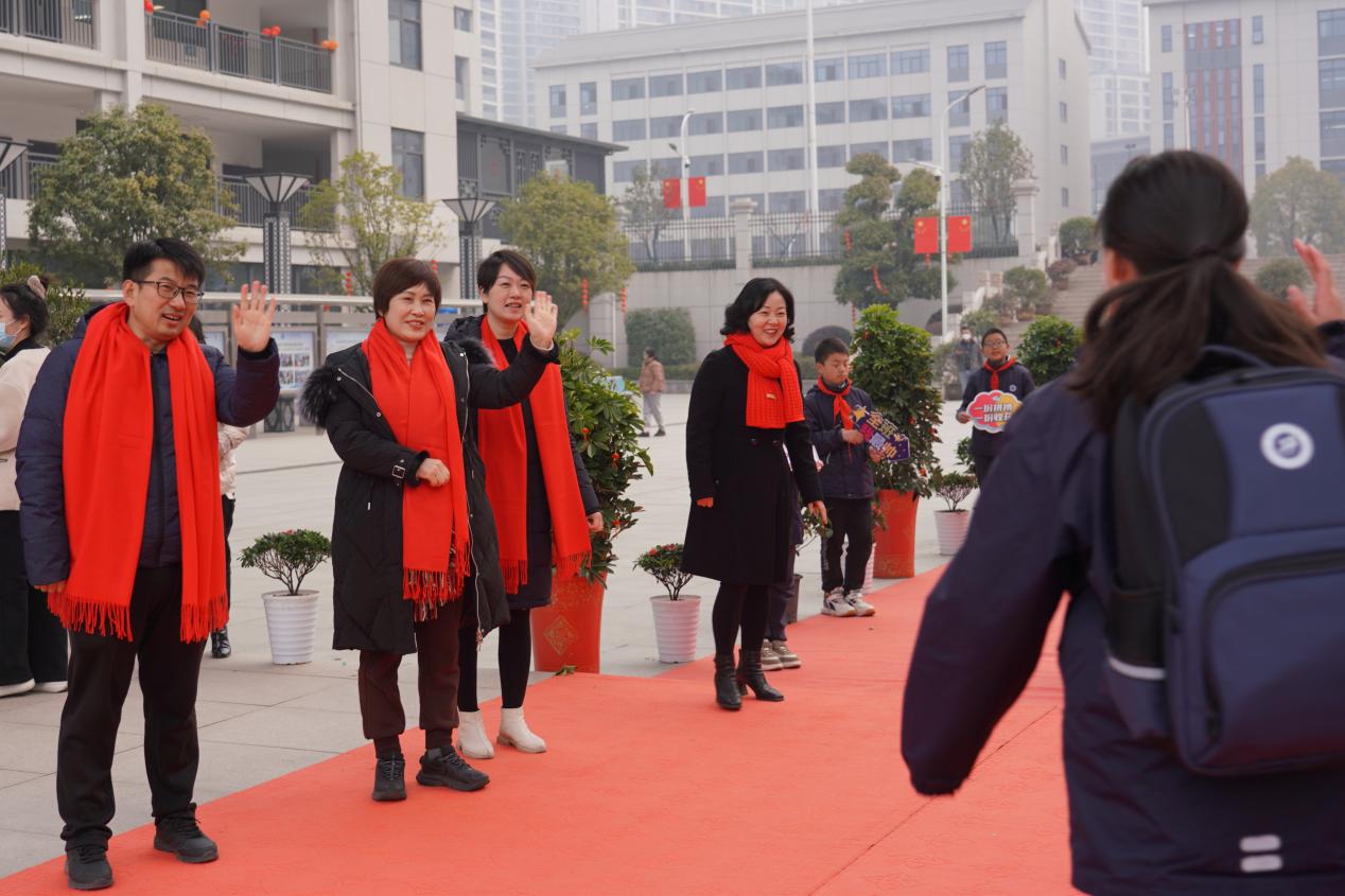 天地迎春,万象更新,在明媚的春光里,我们满怀信心迎接癸卯兔年新学期。2月6日下午-7日上午,学校大门口结彩盛装,气氛热烈,校领导及教职工齐到门口迎接学生返校。