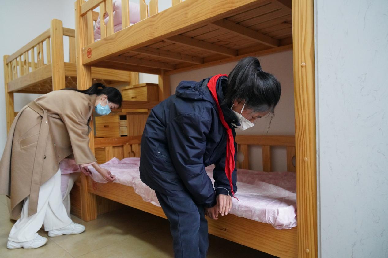 学生回宿舍整理床铺