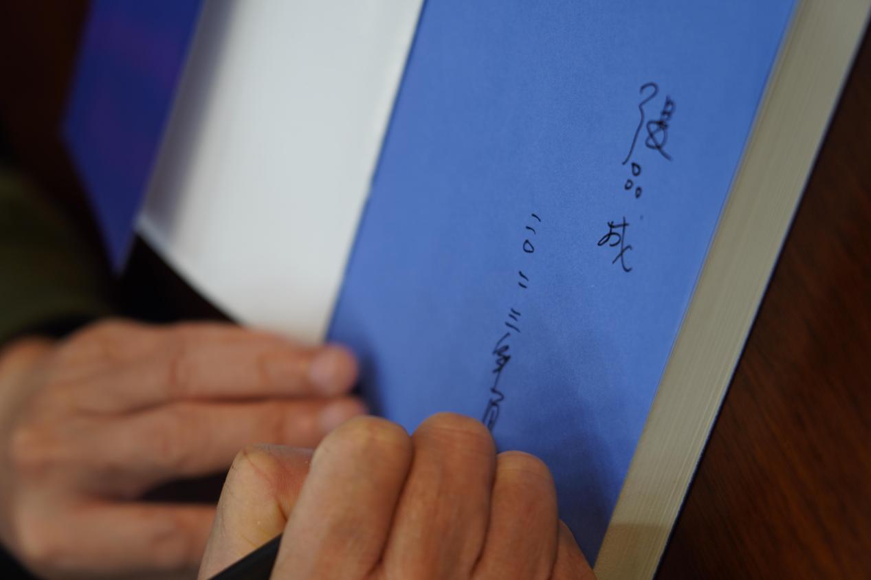 讲座结束后,孩子们手捧书本等待着张品成老师的亲笔签名,心情激动。