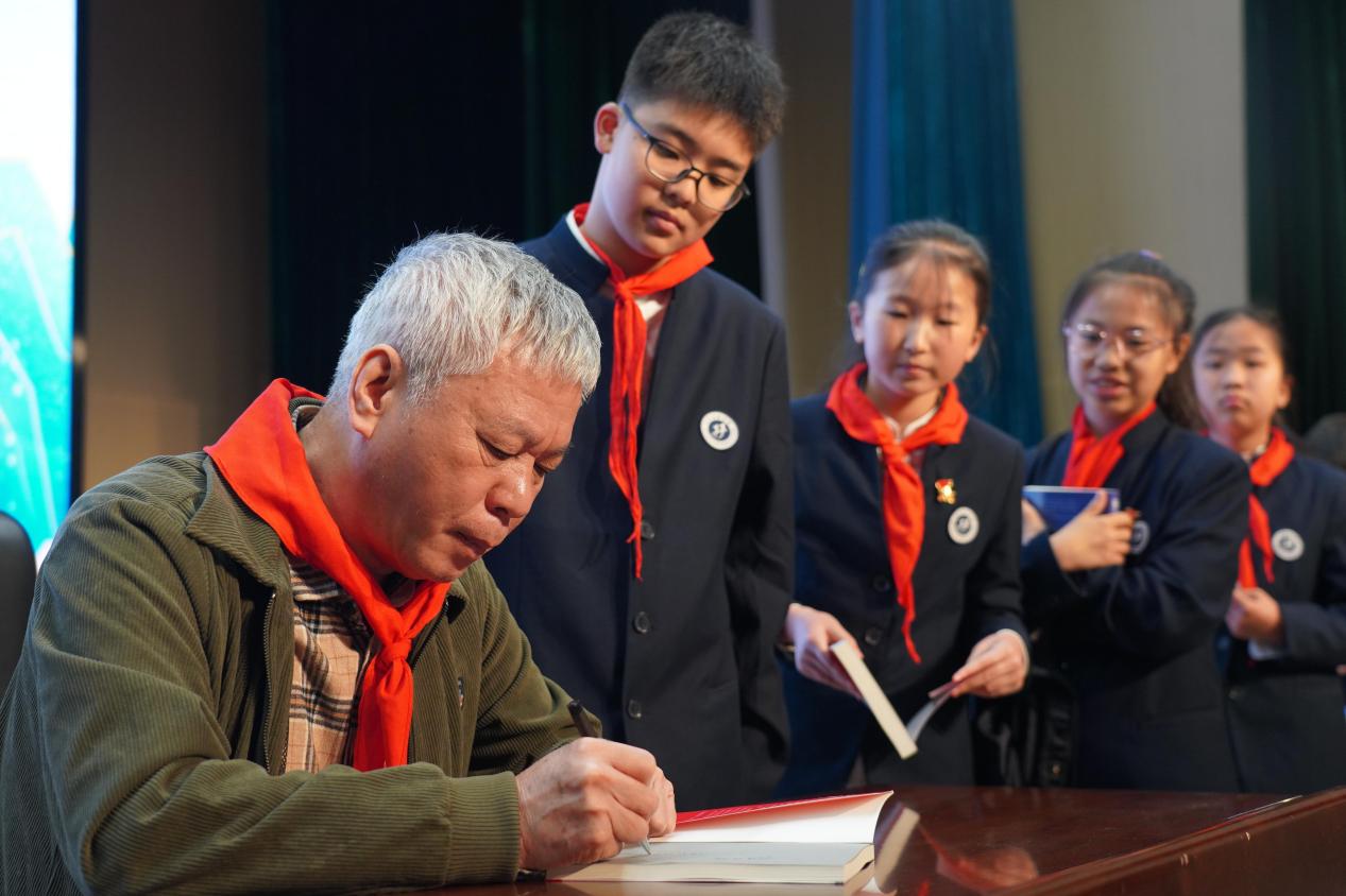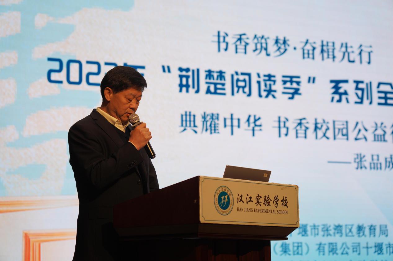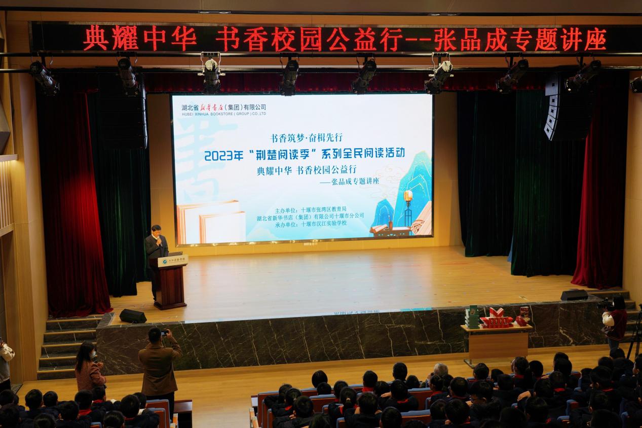 人间最美四月天,最是书香能致远。为进一步推进书香校园和特色校园文化的建设,培养学生们对阅读活动的兴趣,2023年4月24日,由湖北省新华书店(集团)有限公司十堰市分公司主办的“典耀中华·书香校园公益行”著名儿童文学作家张品成专题讲座活动在我校举行。著名儿童文学作家张品成走进我校,与汉实学子分享他笔下的红色少年成长故事。