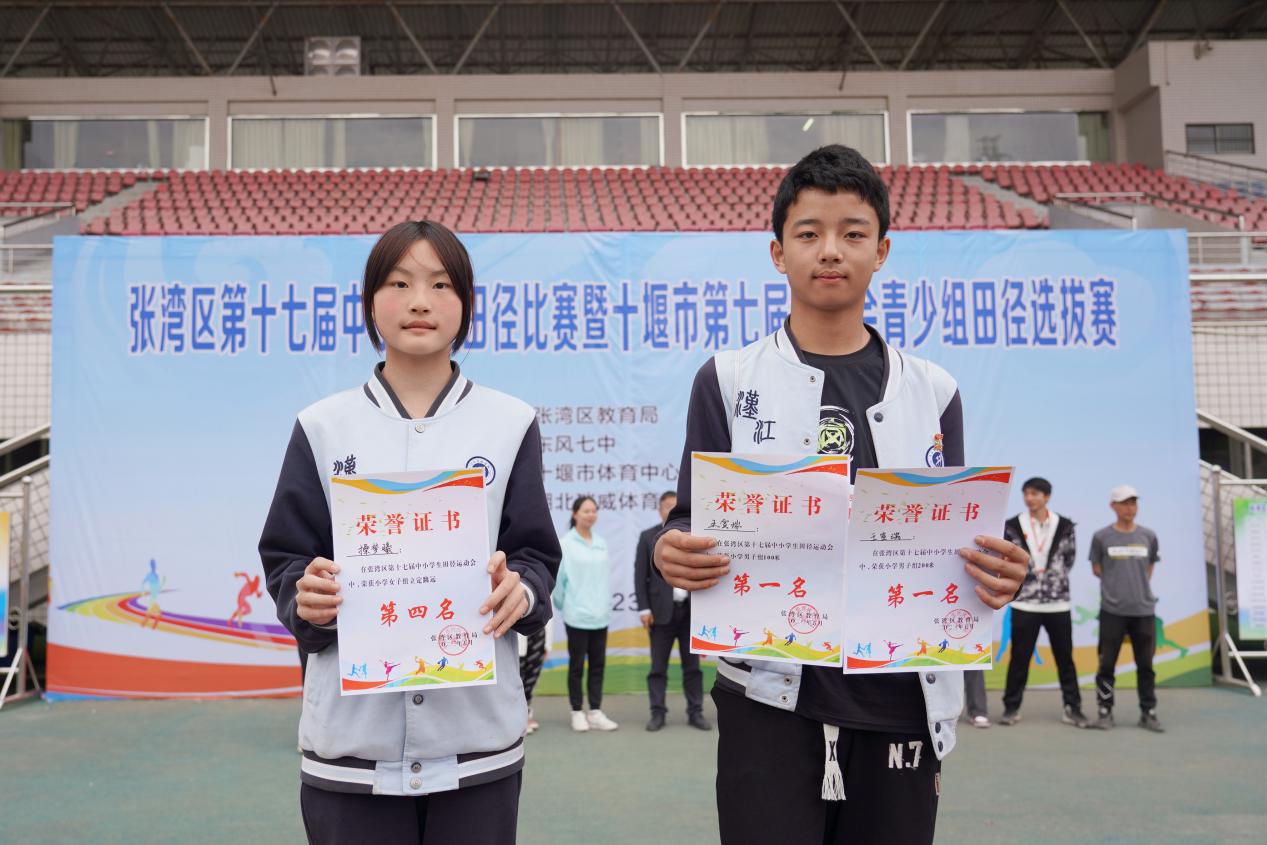 昨日,张湾区第十七届中小学生田径运动会在十堰市体育中心落下帷幕。我校学生在来自45所学校的3000余名运动健儿中脱颖而出,斩获优异名次。六(4)班学生王宣瑞荣获小学男子组100米、200米第一名,六(6)班学生操梦曦荣获小学女子组立定跳远第四名。