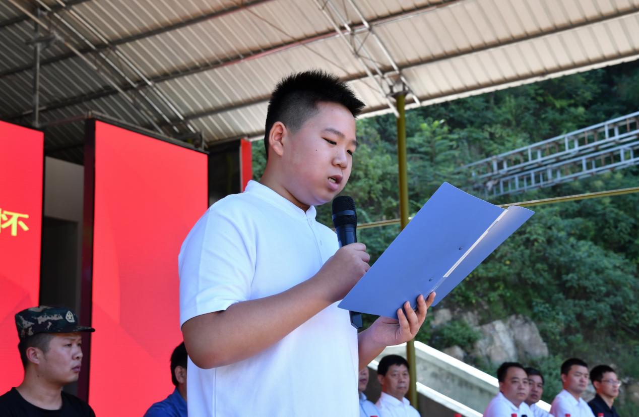 七年级新生代表温民圣康同学发言:“我们七年级全体新生将以蓬勃的朝气和必胜的信心,从思想和行动上高度重视此次军训,认真遵守军训日程安排。我们将发扬团队精神,吃苦耐劳,勇于承担,以饱满的信心和良好的精神风貌完成此次军训任务。”