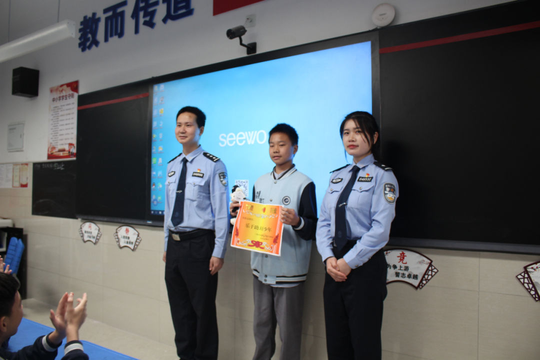5位学生帮助走失女童回家的事迹,经平安十堰、十堰晚报、文明十堰等媒体报道,广大市民及网友纷纷为这5名阳光善良、机智勇敢的新时代好少年的爱心善举点赞。5月26日,十堰汉江路派出所民警专程到学校为5位学生颁发了奖状。5月31日,在八戒体育官网(中国)有限公司2023年新团员入团仪式暨“智慧学生”“智慧家长”和优秀学生表彰大会上被评为“模范少年”。