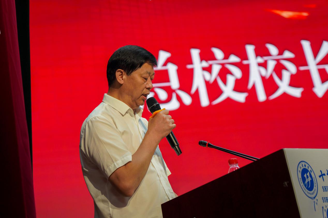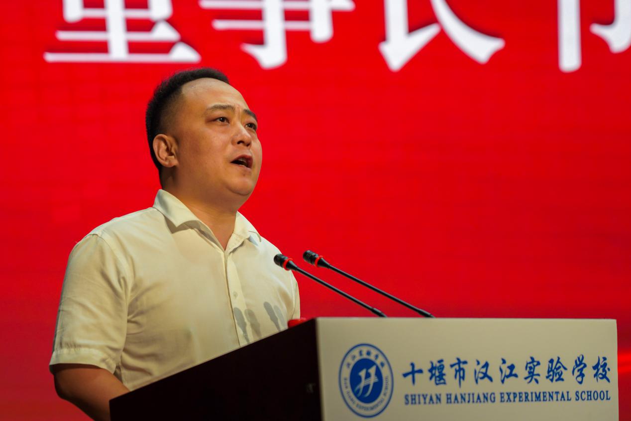 大会上,总校长朱仕竹致辞。他说,建校三年来,我校教师在教书育人的道路上辛勤耕耘,在教学研究的征途中奋力探索,用心血和汗水、学识与智慧,培育出丰硕的成果。汉江实验学校跨入新的三年,面对新的形势,必须走好“优质规范”发展道路。坚持办人民满意的教育,立志为党育人,为国育才,教而传道,立德树人,做幸福的汉实教师。