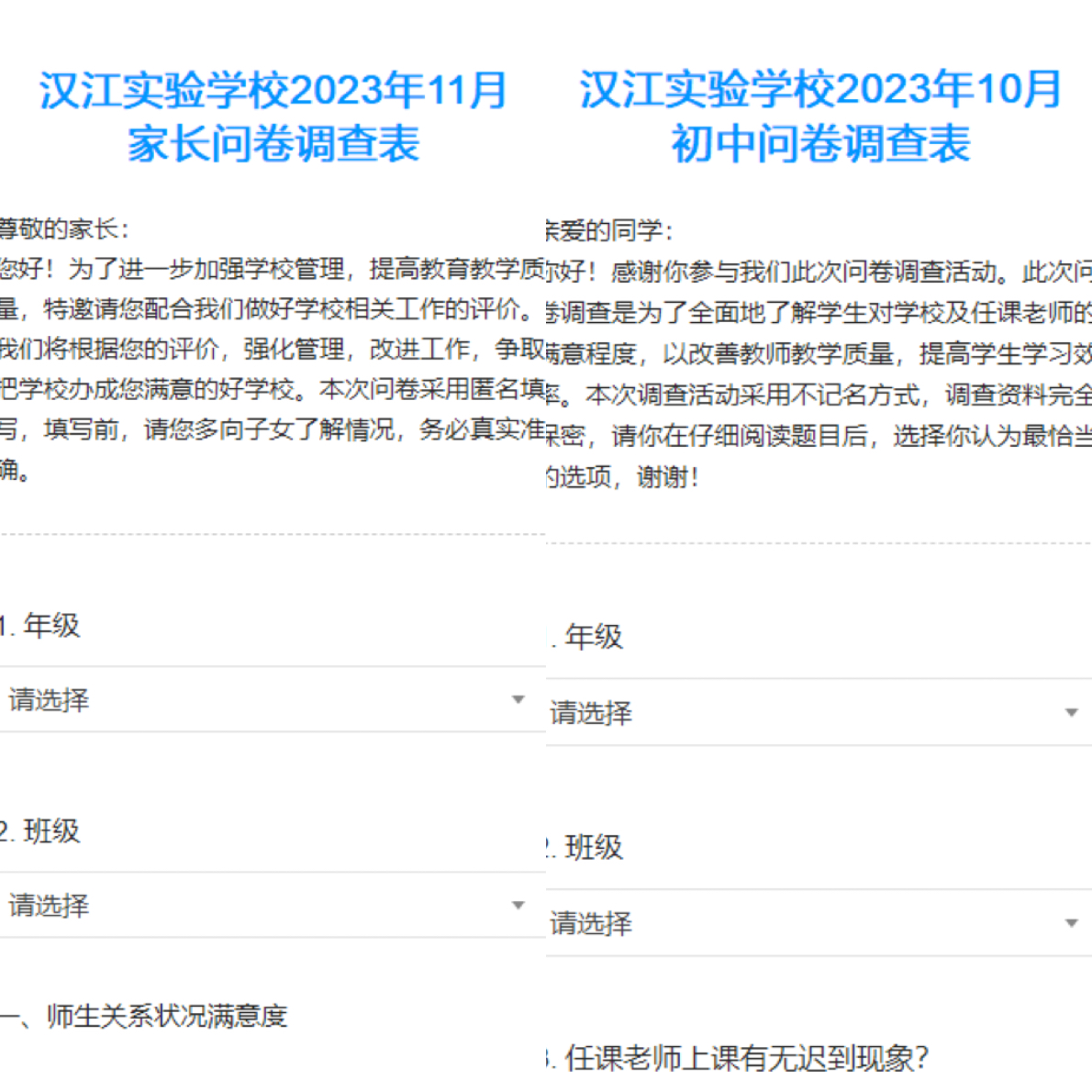 学校督导室牵头,每月组织学生评教,及时总结经验,榜样示范,及时发现问题,改进教学;年级牵头,组织学生参与班级常规工作事务的检查评比;班级定期召开学生座谈会,听取学生的意见和建议。让学生参与到教育教学评价中,打造了师生发展的共同体,不仅提高了学生的责任感,更有效地促进师生和谐发展。