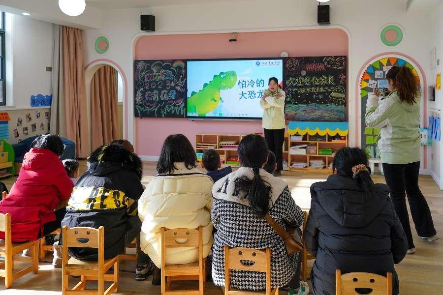 活动中,幼儿园里充满了欢声笑语。在音乐律动环节,孩子们和家长们一起参与了《口香糖》互动热身,通过音乐和舞蹈拉近了彼此的距离。在主题活动《不怕冷的大恐龙》中,孩子们通过故事和游戏了解如何应对寒冷。