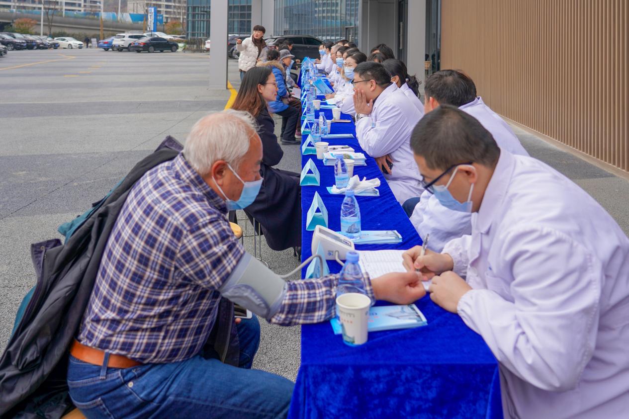 在仪式现场,社区医院还举行了健康义诊活动,来自人民医院的 24 个专科主任为社区居民提供了免费诊疗服务。