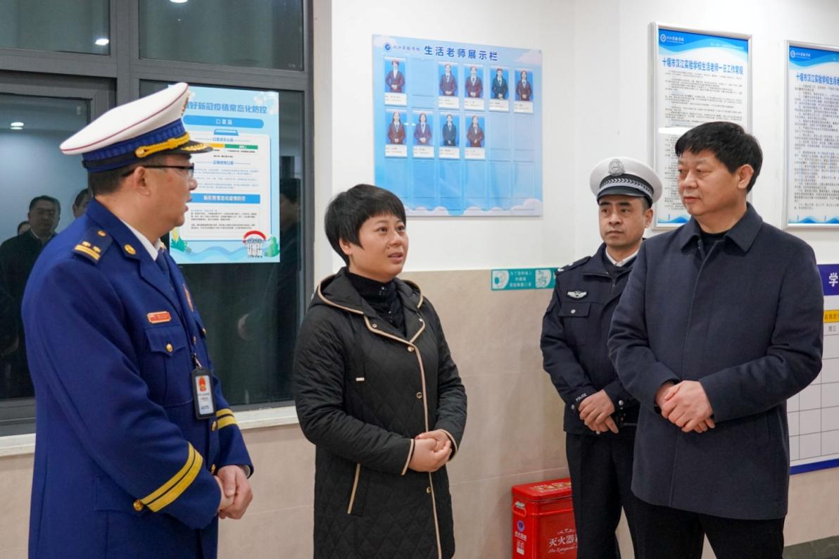 十堰市教育局局长寇伟,十堰市应急管理局党委书记、局长余绍朝,十堰市消防救援支队支队长韩波,十堰市公安交管局局长秦汉明等领导陪同调研。