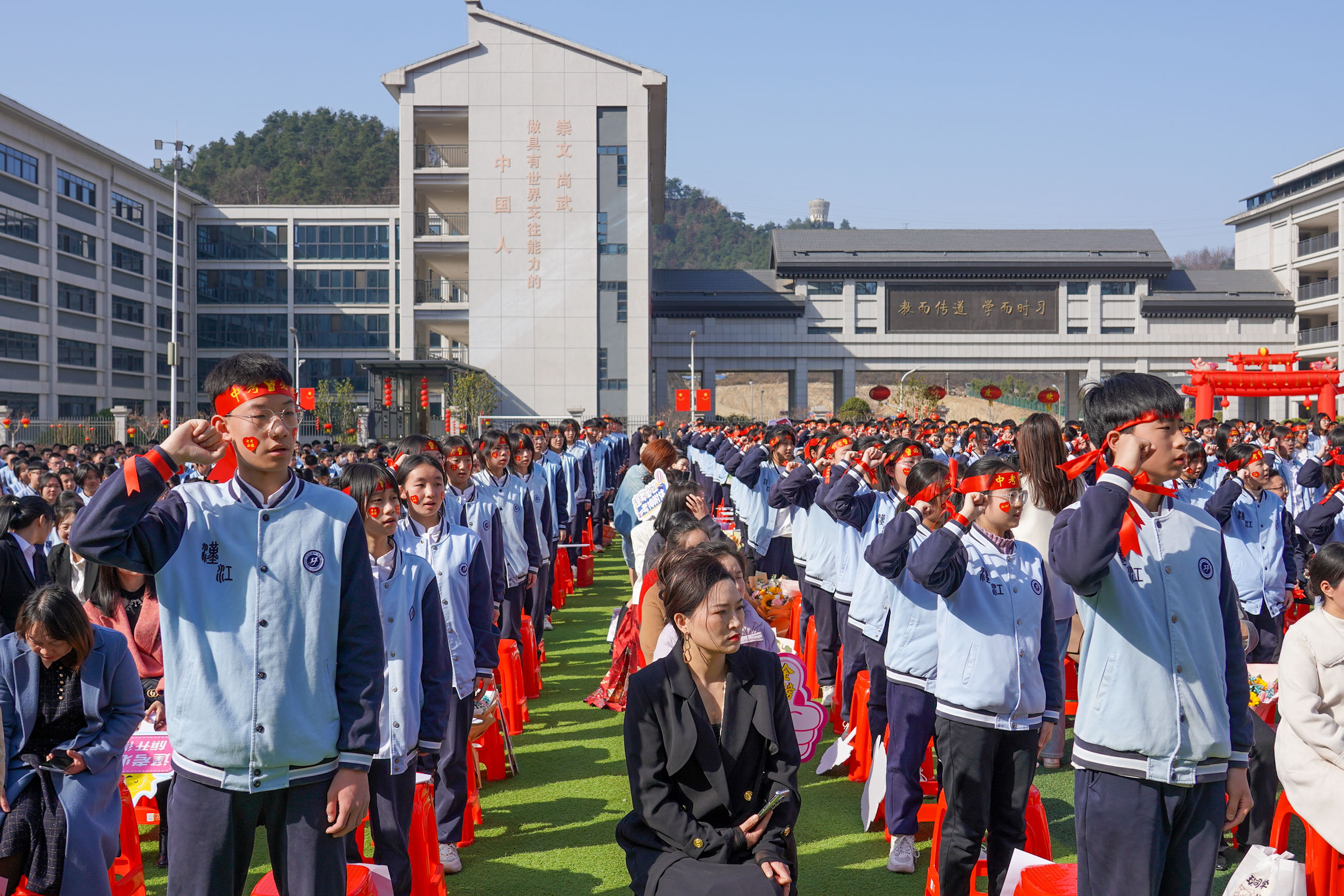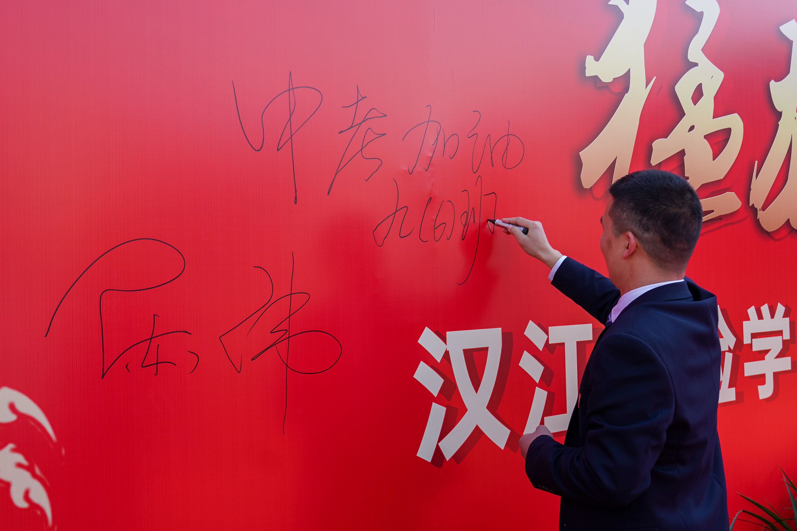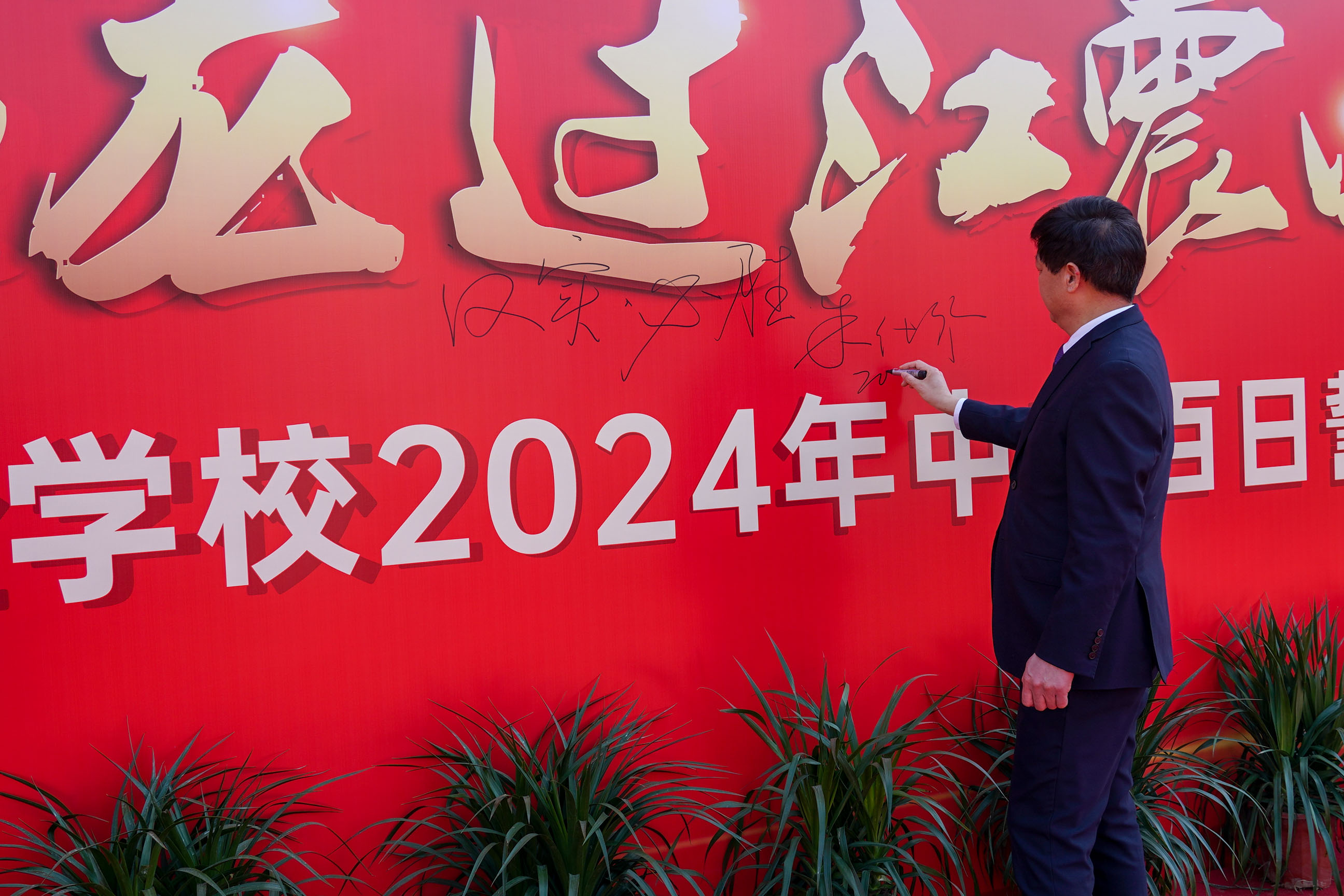 最后,由党支部书记陈伟、校长朱仕竹为八九年级授战旗,年级主任上台接过象征荣誉与责任的战旗。全体师生签名,赓续汉实自强不息的精神,共同迎接中考挑战,书写新辉煌篇章。
