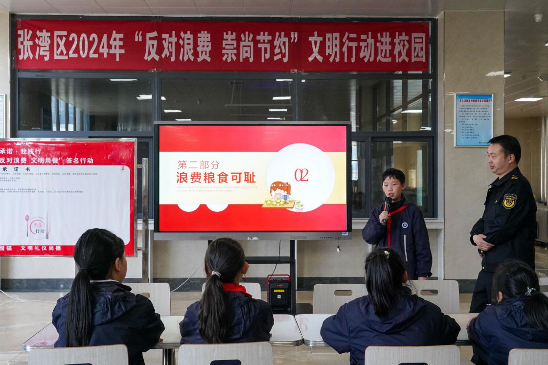 3月25日下午,张湾区市场监督管理局联合汉江实验学校开展以“反对浪费,崇尚节约”为主题的专题讲座。此次讲座由区市场监督管理局食品安全监管股干部吴世刚主讲,我校五年级学生参加活动。