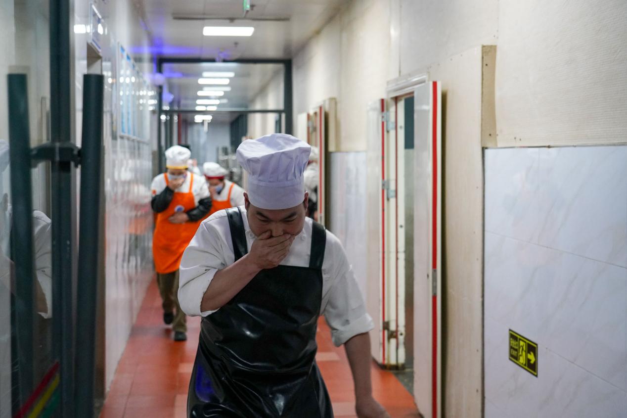 随着演练警报声响起,演练正式开始。食堂现场负责人李明鹏迅速组织食堂工作人员进行紧急疏散,各楼层疏散引导员立即到达指定位置,对区域人员进行引导疏散,各岗位工作人员迅速作出反应,弯腰低姿捂口鼻,沿疏散指示标志,从最近安全出口,有序地向安全地带撤离。