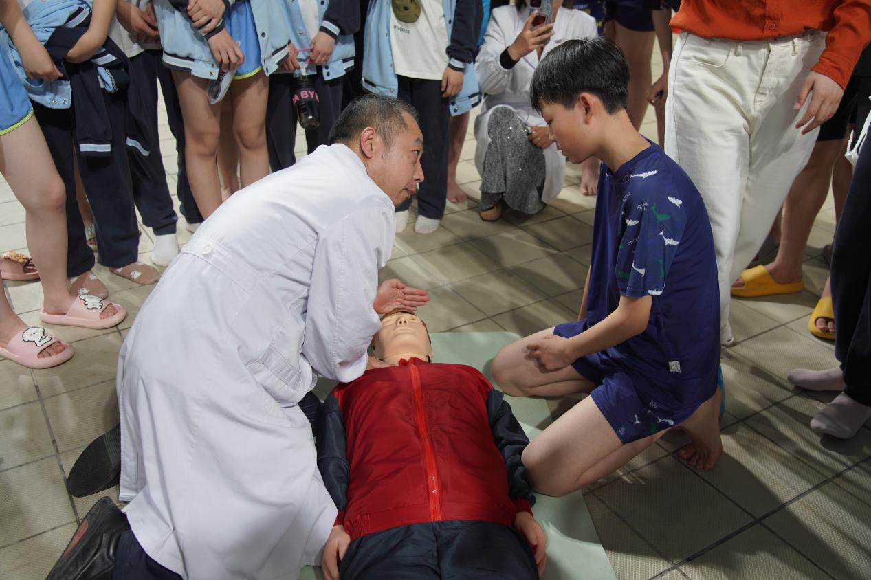 此外,我校邀请人民医院的急诊专家讲解溺水急救知识,并对心肺复苏等急救方法进行现场演示,使同学们在实际操作中更好地掌握急救技能,从而进一步加深学生对溺水危险性的认知。