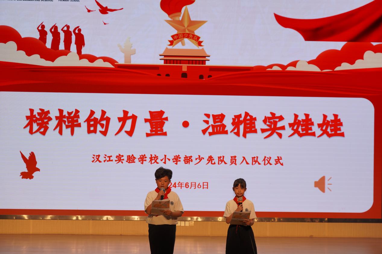 鲜艳的红领巾系满理想,火红的团旗正迎风飘扬。近期,汉江实验学校小学部和初中部分别开展了入队和入团仪式活动。