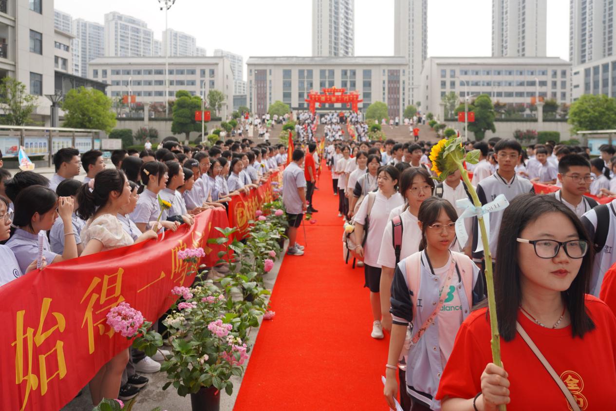 沧海横流跃龙门,奋楫逐浪启新程。6月20日上午,汉江实验学校为九年级学子精心举办了一场中考送考仪式。我校党支部书记、董事长陈伟,总校长朱仕竹等领导,与九年级老师和家长、七八年级全体师生一起为九年级学子中考壮行助威,为迎考再添动力。