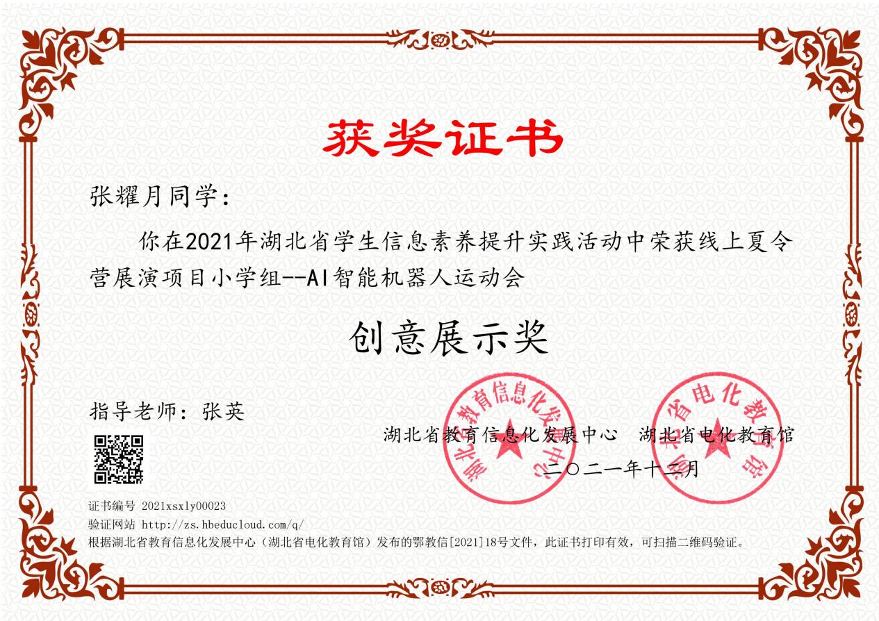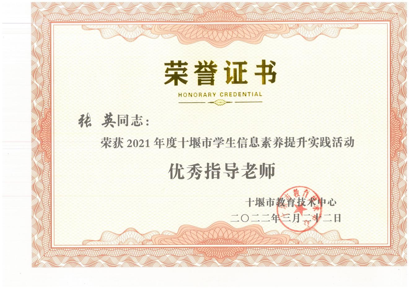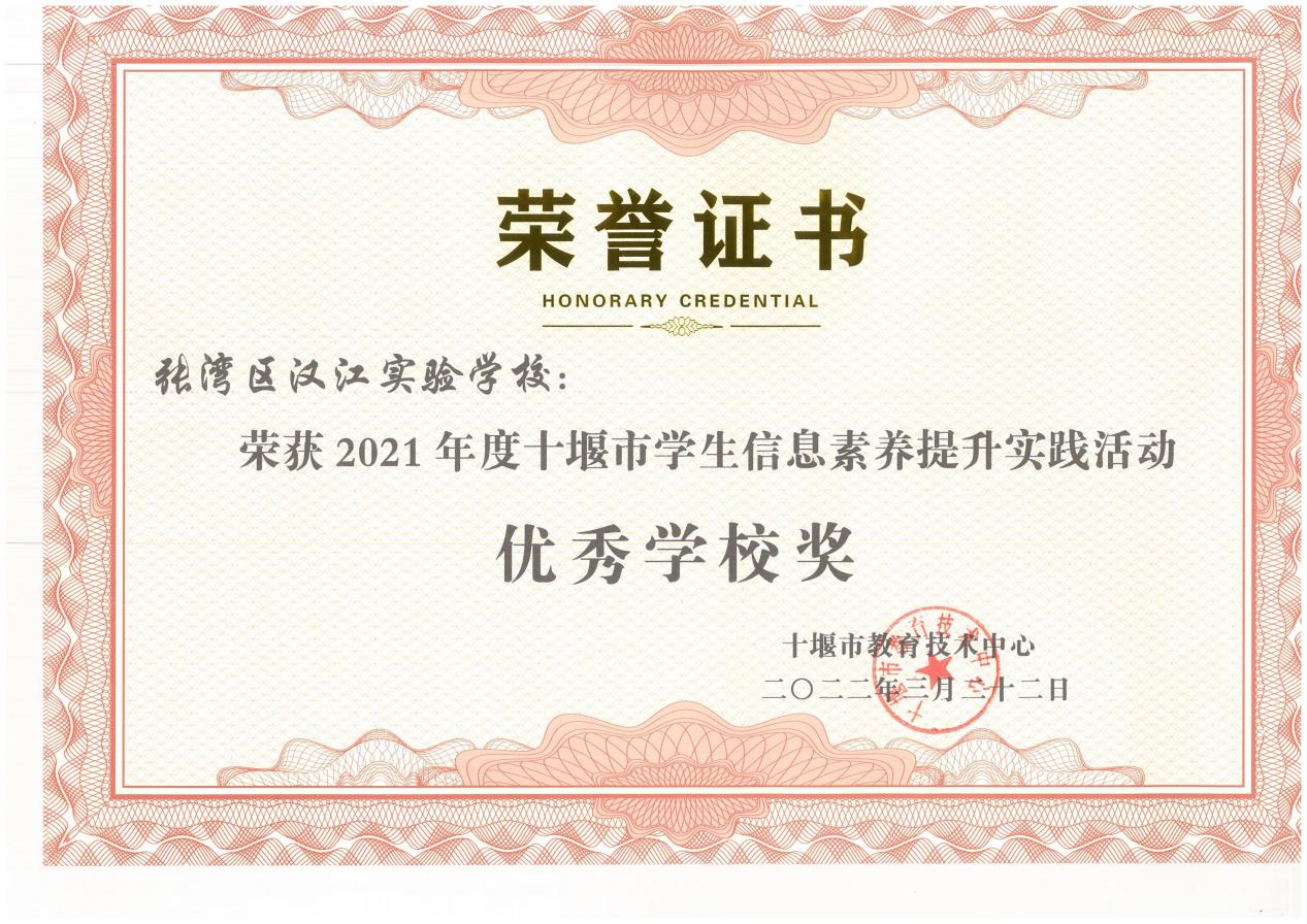 2021年湖北省学生信息素养提升实践活动和2021年全省中小幼学生“成语中国”微电影征集展播活动在万众瞩目中落下帷幕,汉江实验学校教师带领学生一路披荆斩棘,最终斩获多个奖项。我校荣获2021年湖北省学生信息素养提升实践活动“优秀学校奖”,陈钰然同学获创客项目“创意展示奖”,陈玺铭、邓权航、范宇诚、王虎臣、田钊成、孔维泽、张耀月七位同学获夏令营展演项目“创意展示奖”,信息技术教师张英荣获2021年湖北省学生信息素养提升实践活动“优秀指导教师奖”。