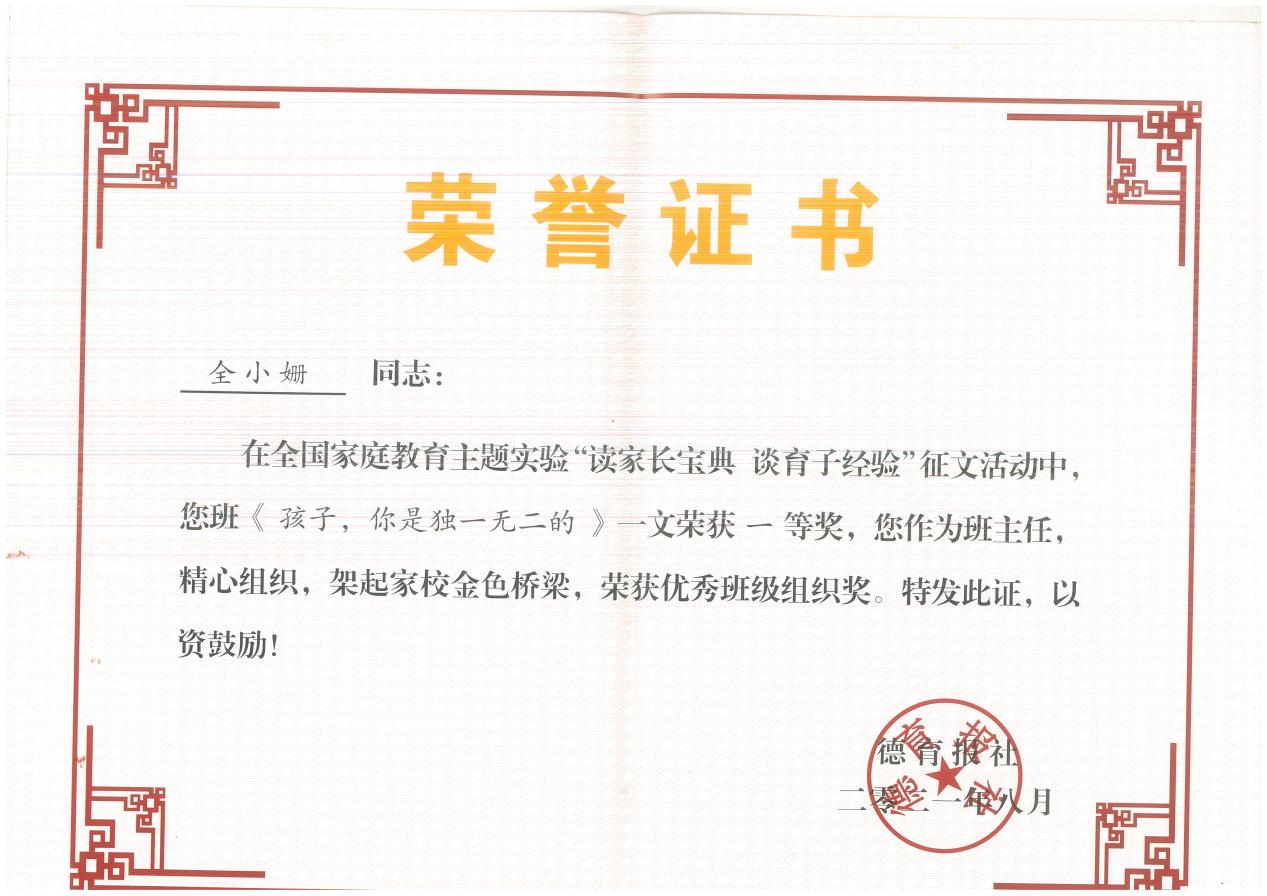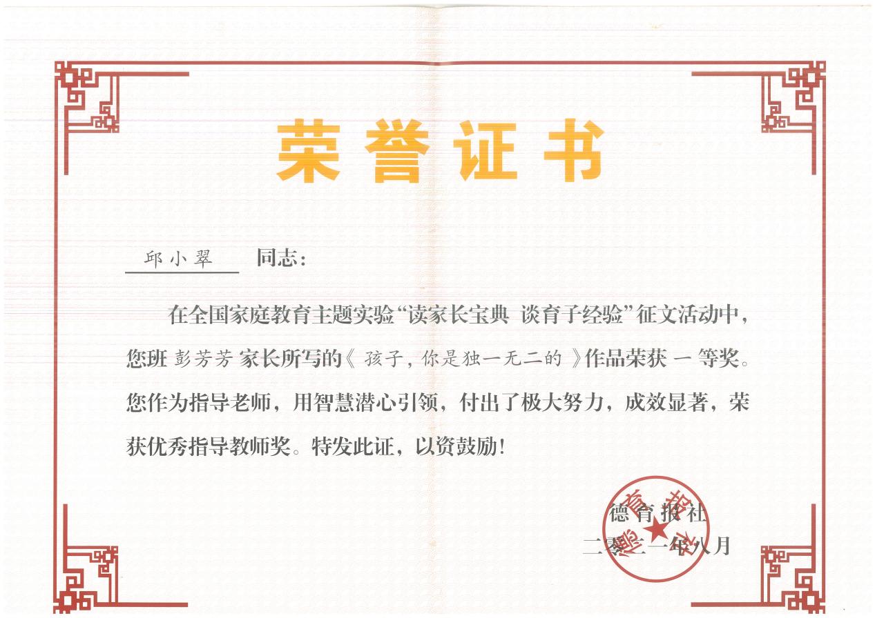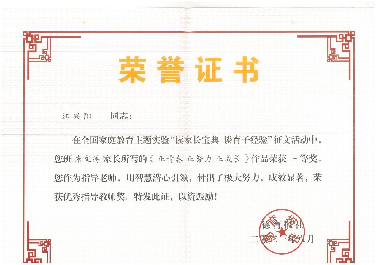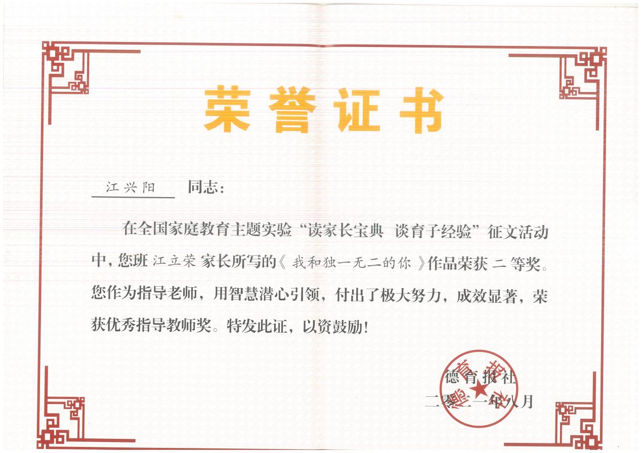 汉江实验学校荣获全国家庭教育征文活动奖项