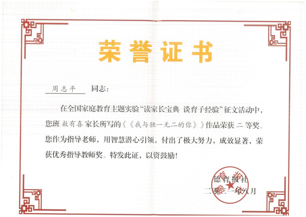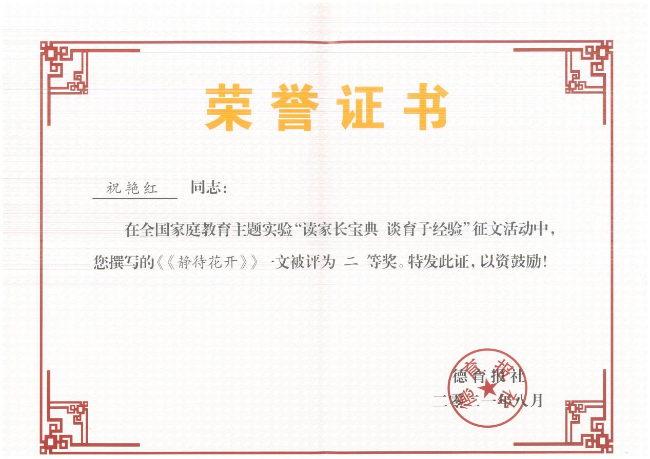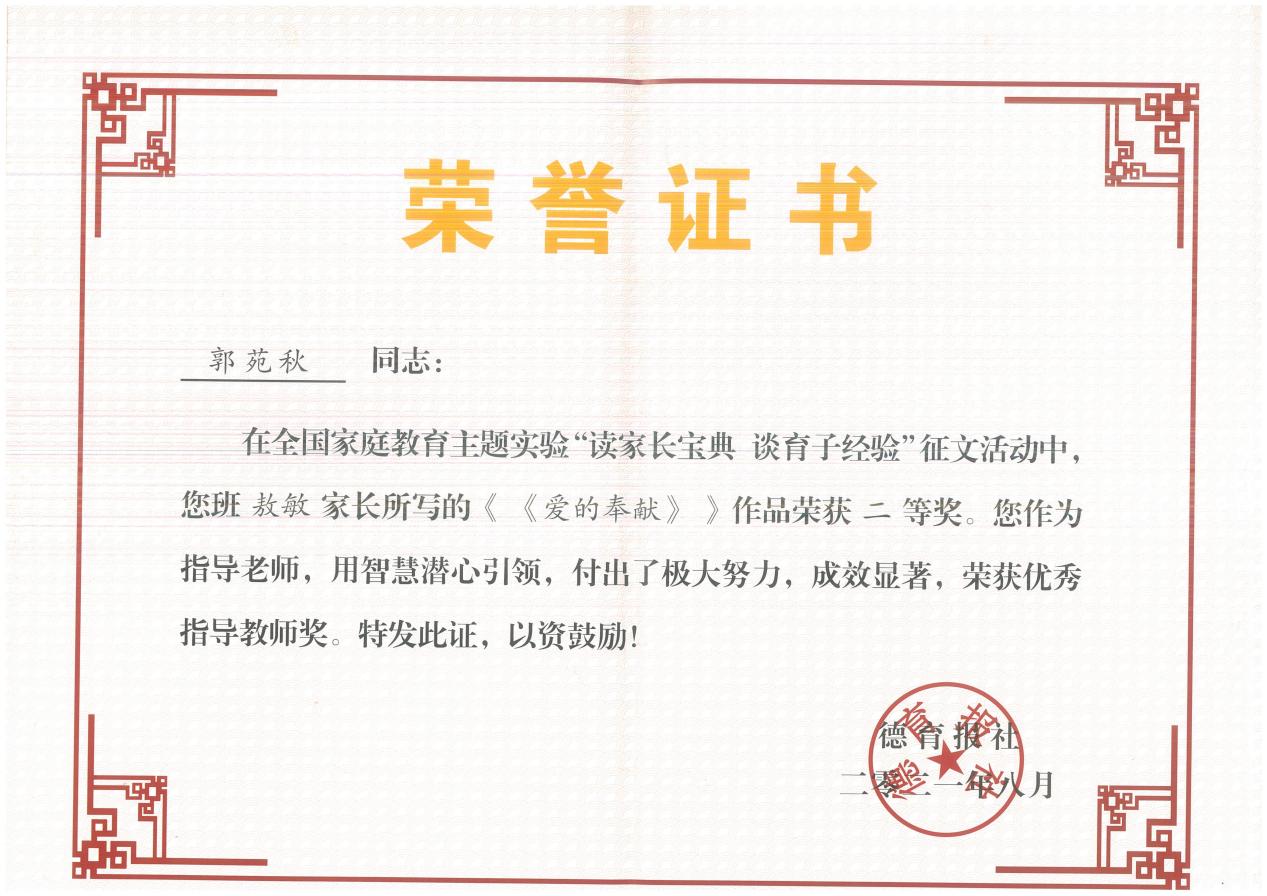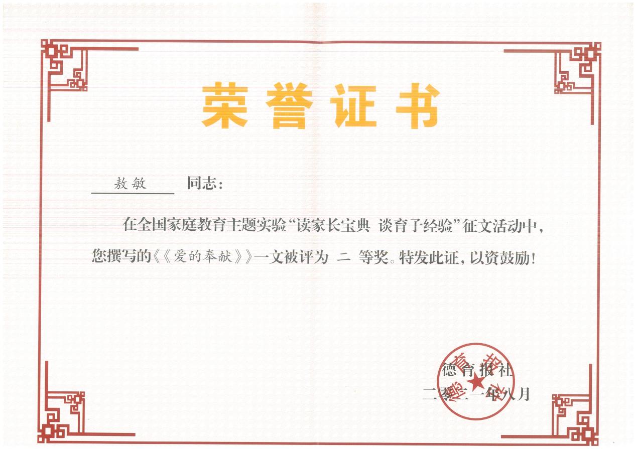 汉江实验学校荣获全国家庭教育征文活动奖项