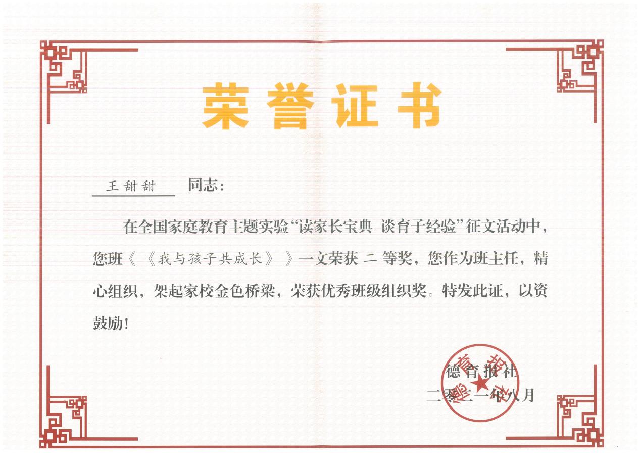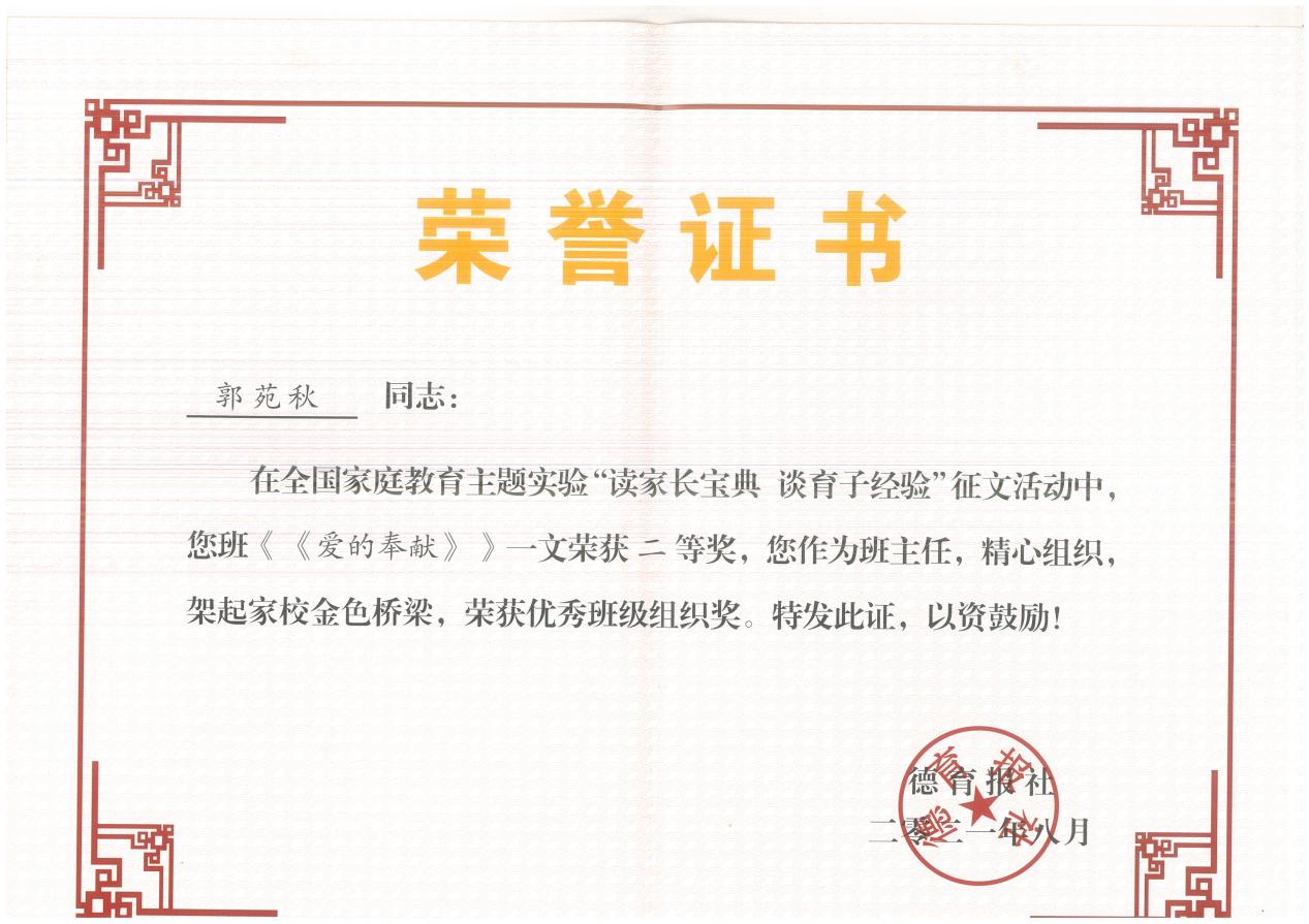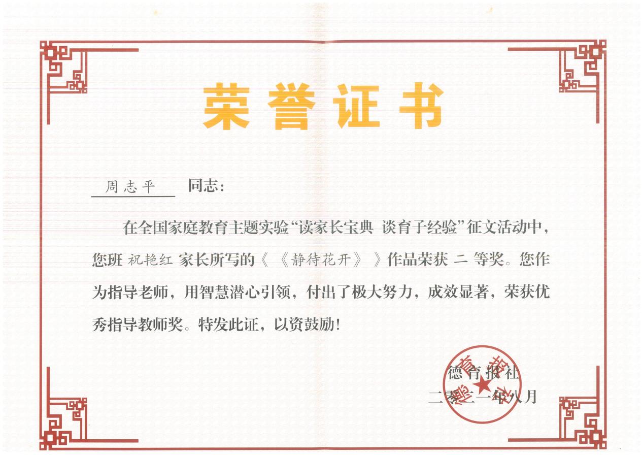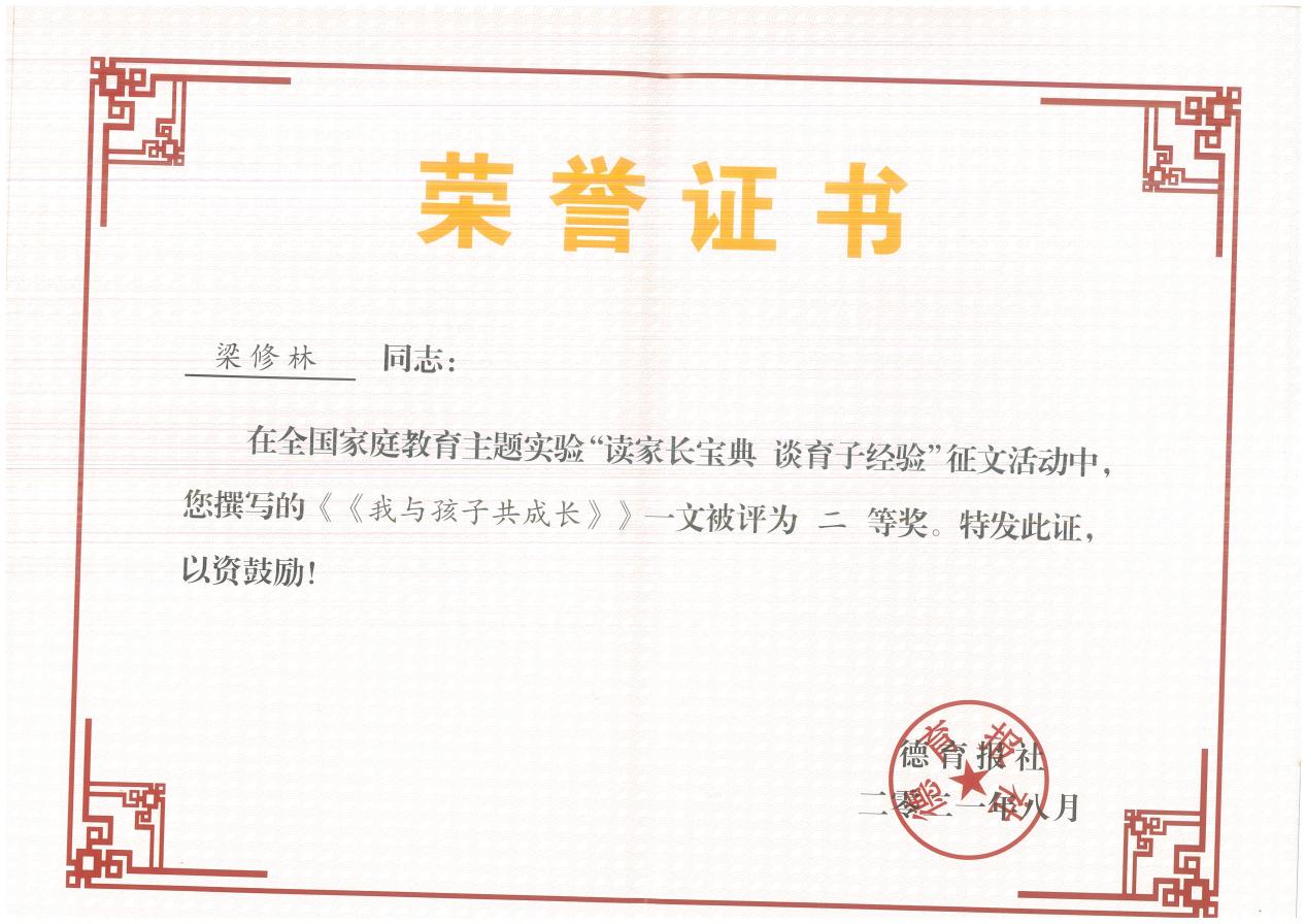 汉江实验学校荣获全国家庭教育征文活动奖项