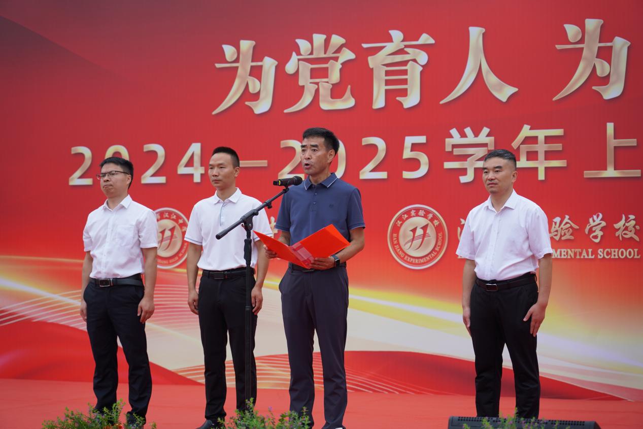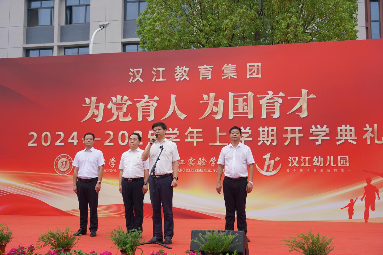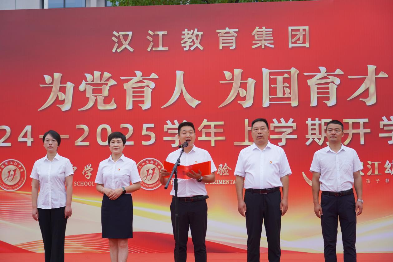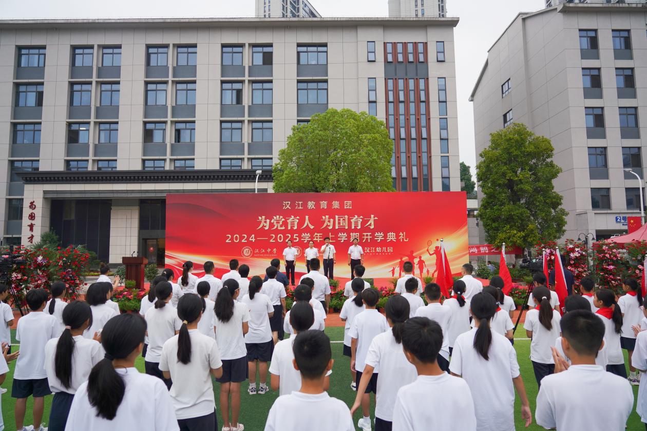 国旗冉冉升,不忘少年志。9月2日上午,汉江教育集团隆重举行“为党育人 强国有我”2024—2025学年上学期开学典礼,汉江教育集团董事长、党支部书记陈伟,汉江教育集团总经理、总校长朱仕竹,汉江中学校长马新民、汉江实验学校校长陈磊、汉江幼儿园园长郑媛等领导出席。本次开学典礼通过线下观礼和线上直播的方式举行,由汉江教育集团行政办公室主任张旭东主持,全体师生3600余人参加盛会,共同开启新学期的崭新篇章。