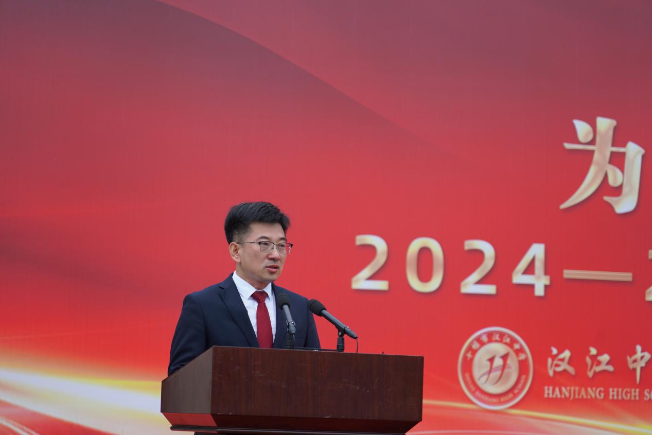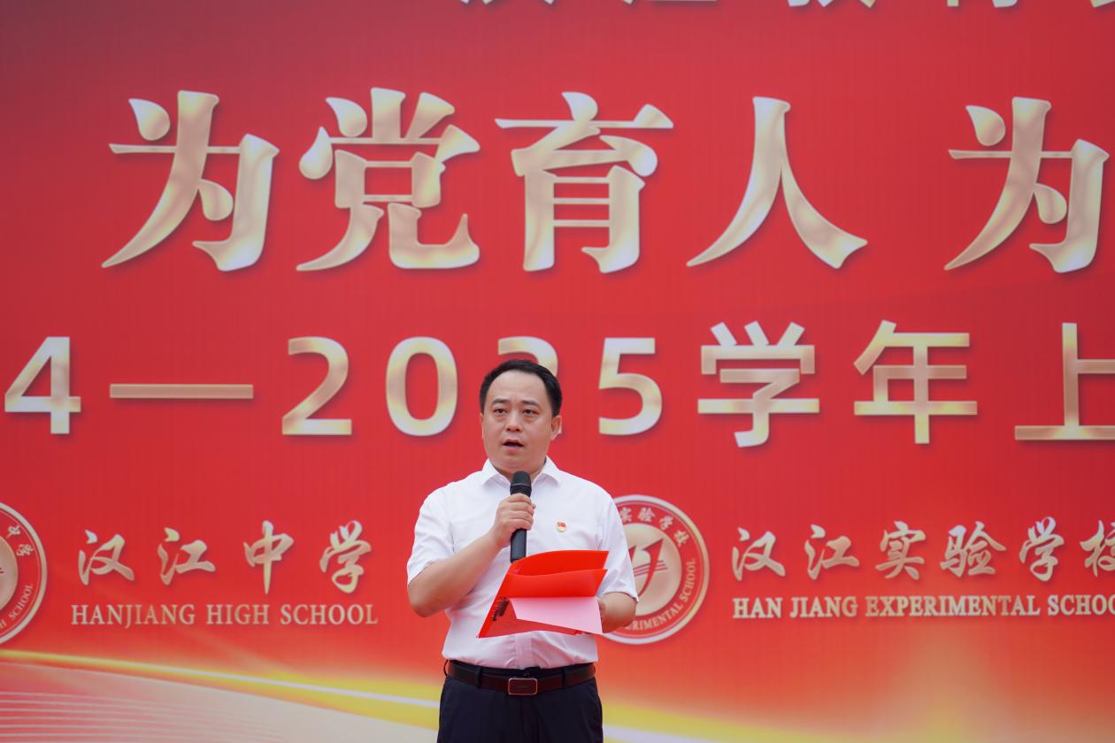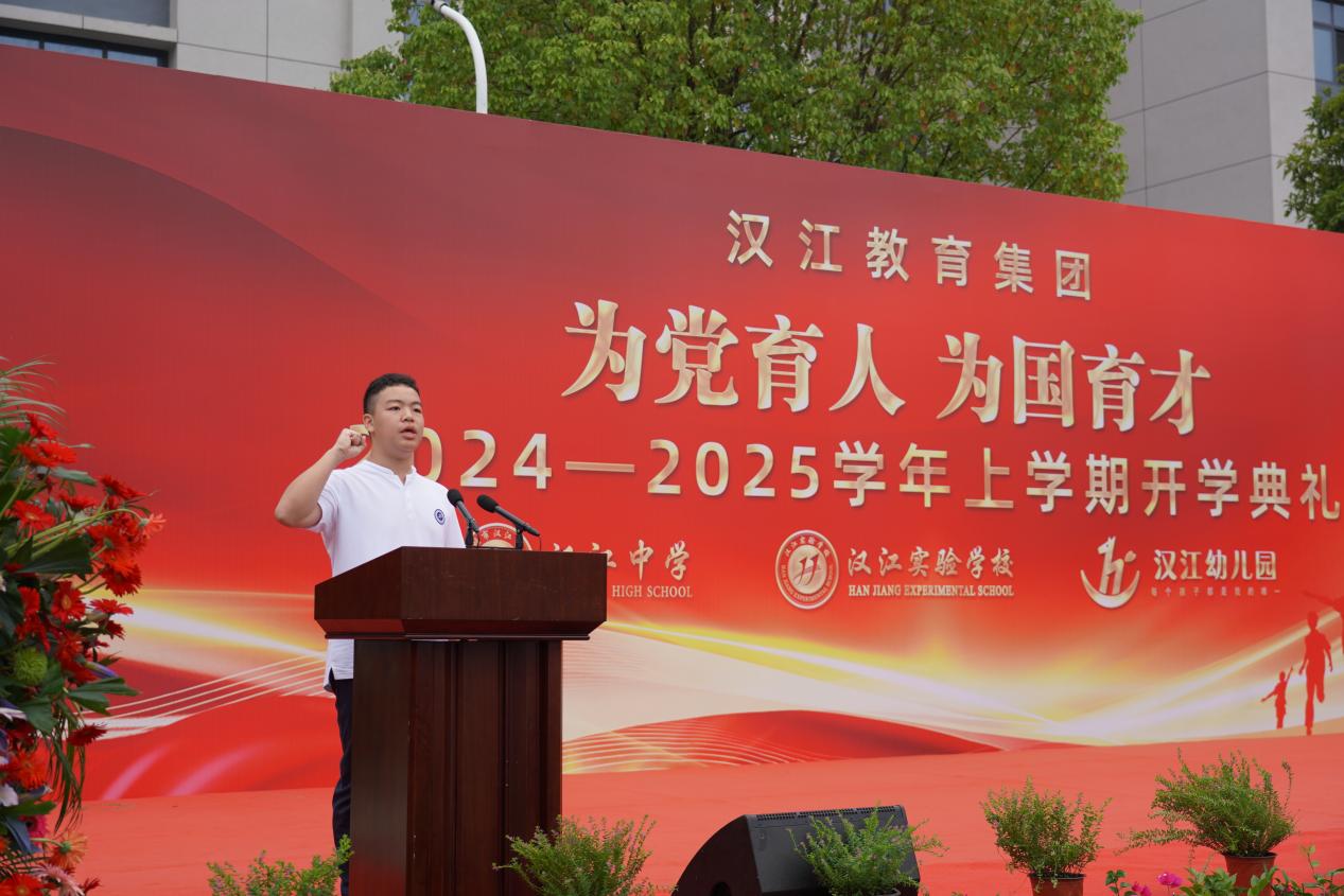 汉江教育集团董事长、党支部书记陈伟回顾了学校的卓越成就,为全体师生上了生动深刻的开学第一课。号召全体师生听党话、感党恩、跟党走,奋发有为,向奥运会上勇夺金牌的十堰姑娘郑钦文学习,树立正确的人生观、价值观和世界观,开创汉江教育辉煌灿烂的未来。