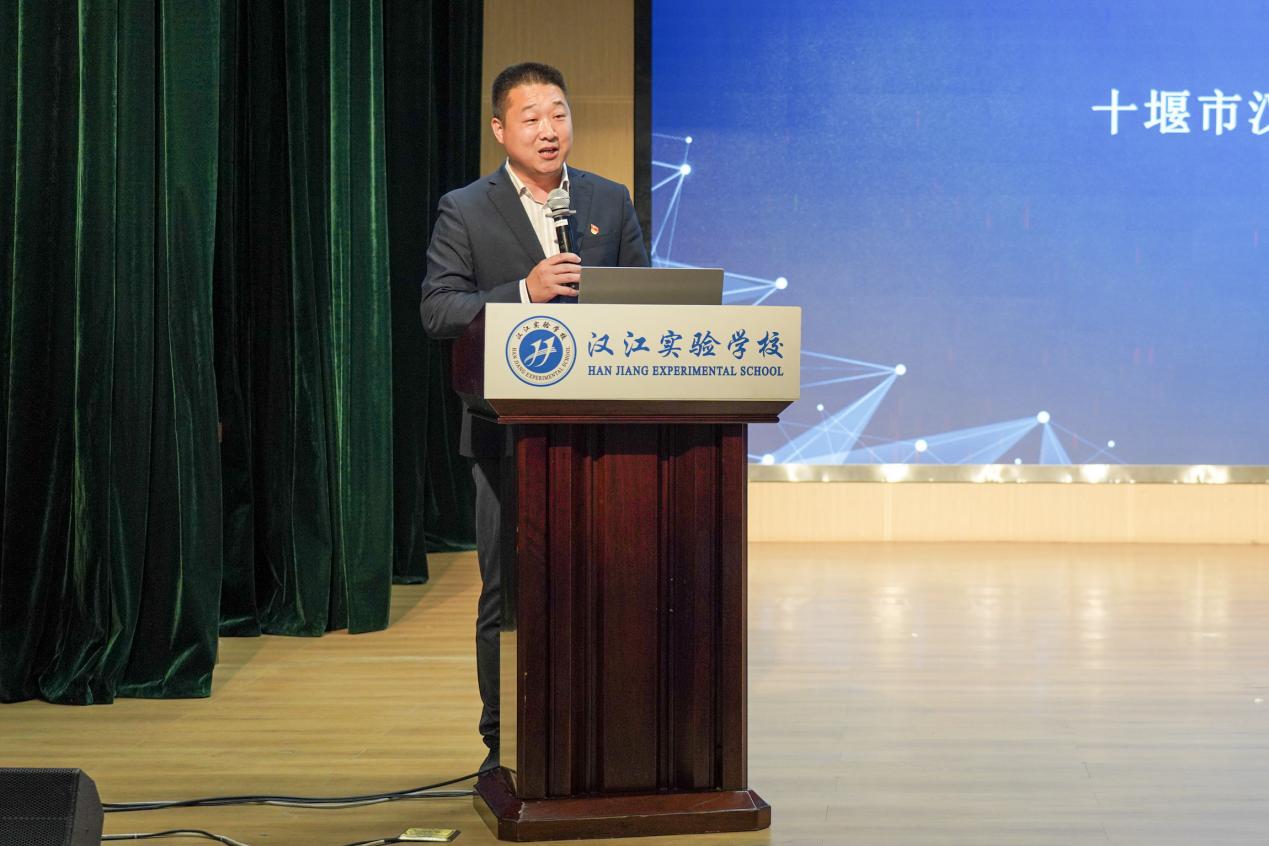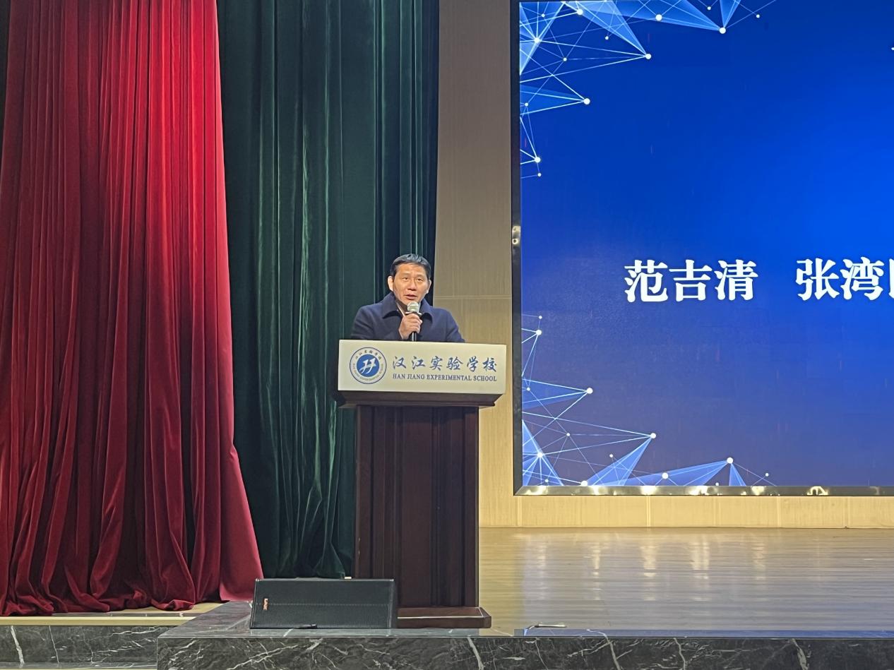 汉江实验学校校长陈磊致欢迎词,他详细介绍了我校初中物理组在“双新”教学改革的背景下,认真学习新课程的改革精神,将核心素养落实到课堂上的经验和做法。并希望大家借助此次交流学习的平台,获取真知、集聚智慧,奉献良策,合作共赢,为我市谱写中考物理教学质量新篇奠定基础。