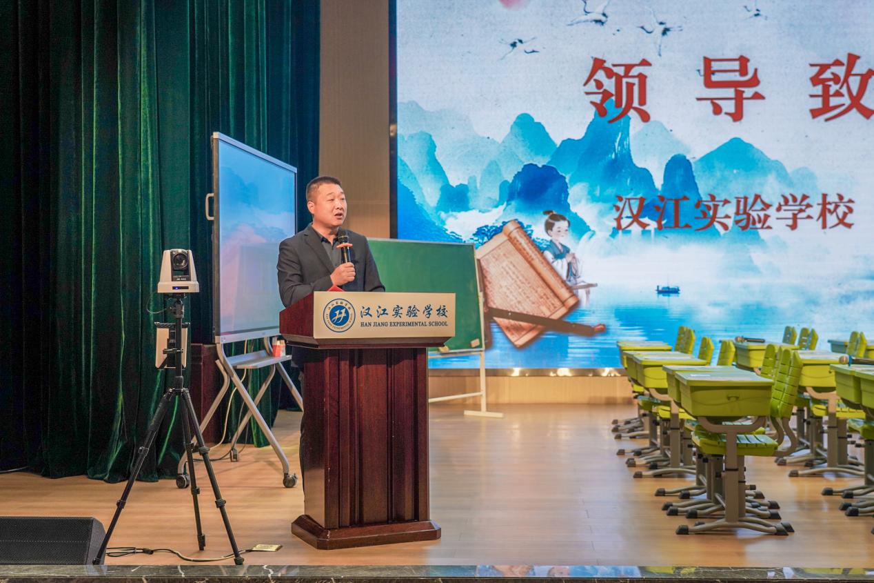 开幕式上,汉江实验学校校长陈磊致欢迎词。他对各位领导、老师的到来表示热烈的欢迎与诚挚的感谢,并详细介绍我校在小学语文学科中的启发式、互动式、探究式教学。他希望我校全体教师借助此次学习交流平台,不断提高自身的专业素养和教学能力,积极投身于教育教学改革之中,为培养更多优秀人才贡献自己的力量。