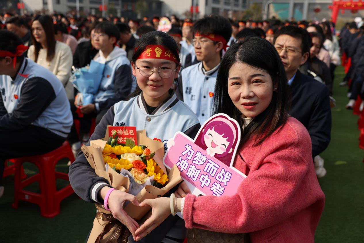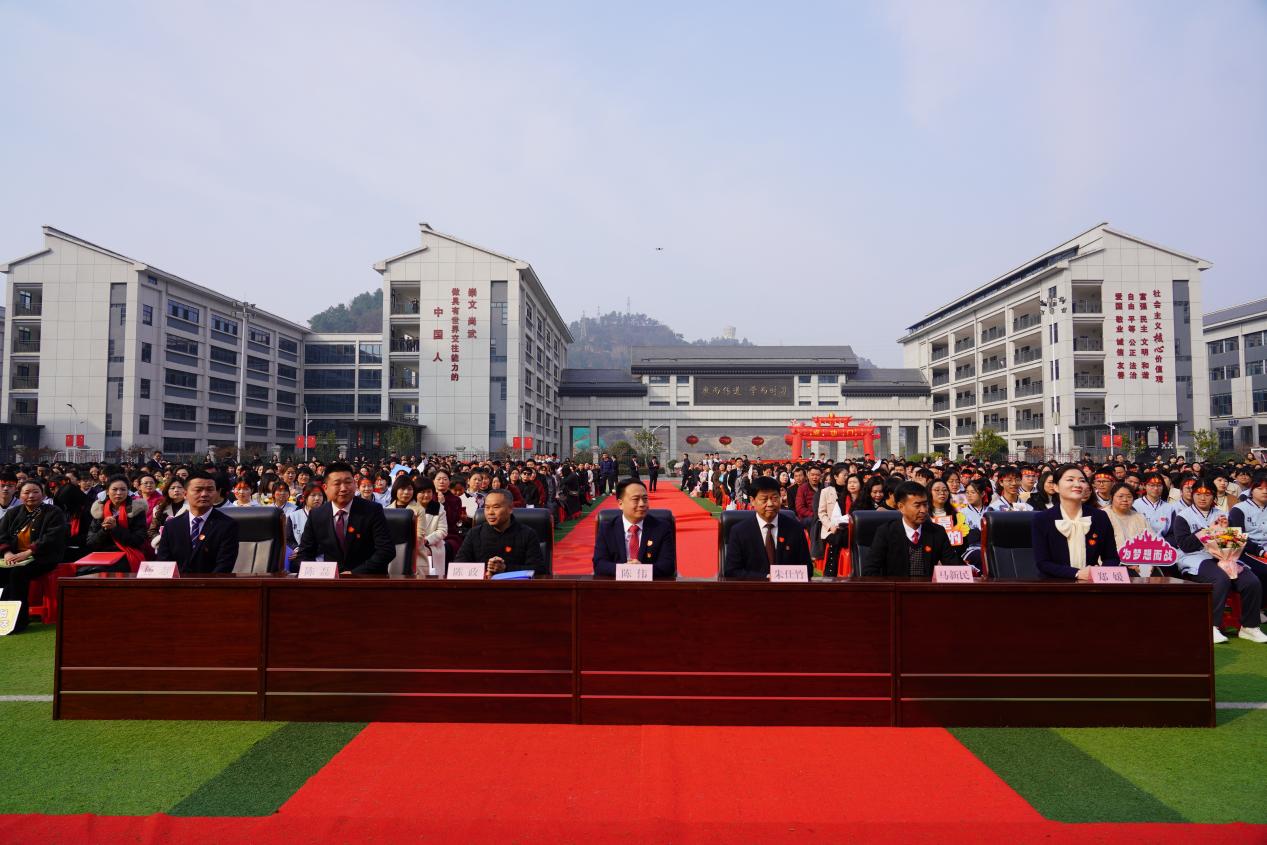 挥毫百日绘锦绣,奋楫六月耀星河。3月11日上午,汉江实验学校隆重举行了2025届九年级中考百日誓师大会,汉江教育党总支书记陈伟、副书记朱仕竹,九年级家长代表陈政,汉江中学校长马新民,汉江实验学校党支部书记、校长陈磊,汉江幼儿园园长郑媛,汉江实验学校副校长杨志,初中部全体师生及家长、六年级学生齐聚田径场,为百日后将踏上中考战场的汉实学子加油鼓劲,吹响冲刺的号角。