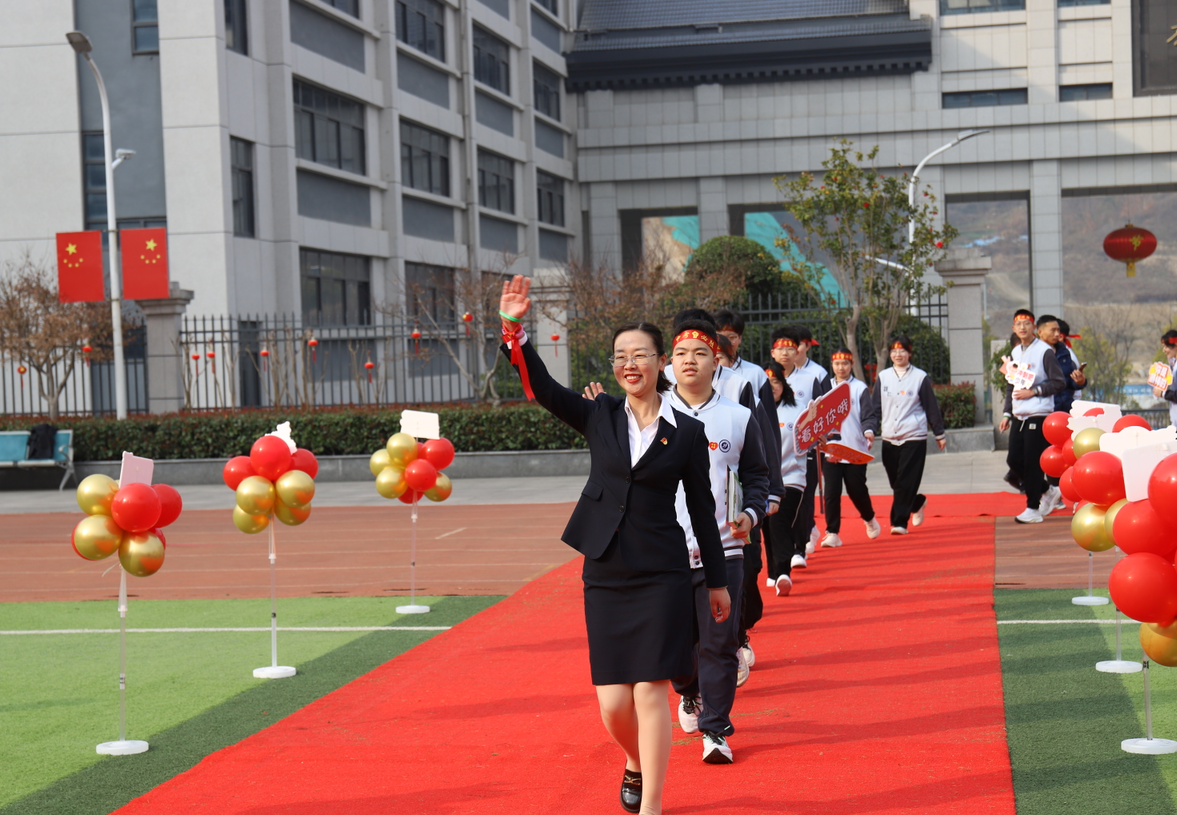 踏征程,启华章。战鼓雷鸣,九年级的学生们手持励志手举牌,迈着自信的步伐通过“成功门”,寓意在中考的征程上勇毅前行,题名金榜!