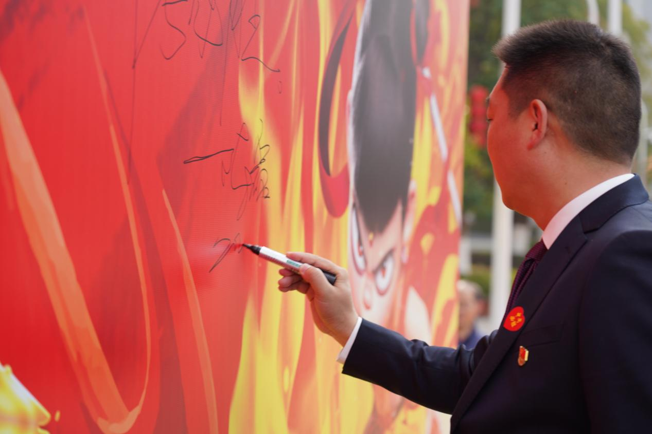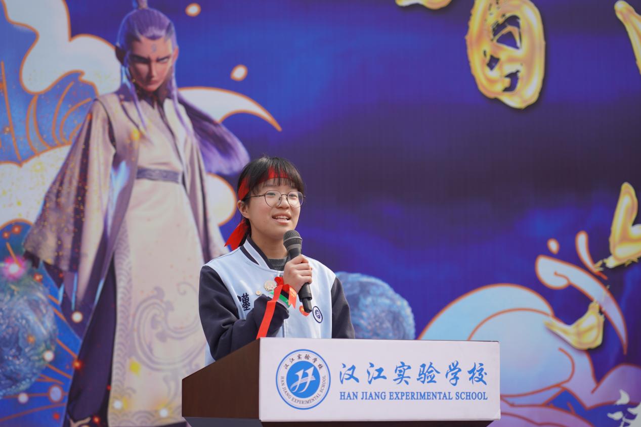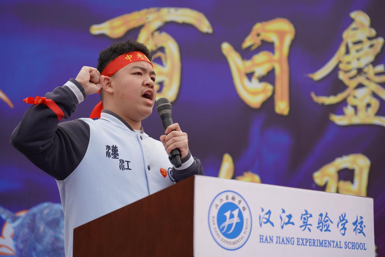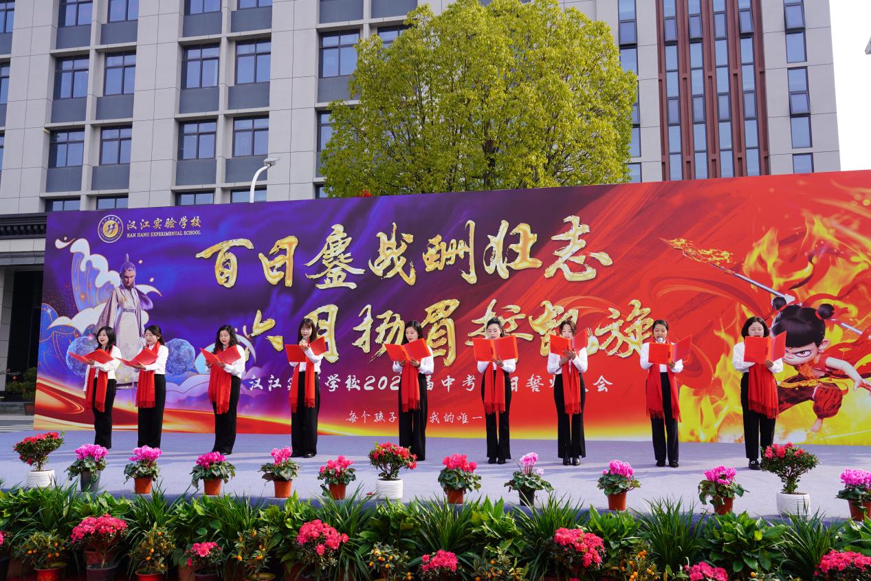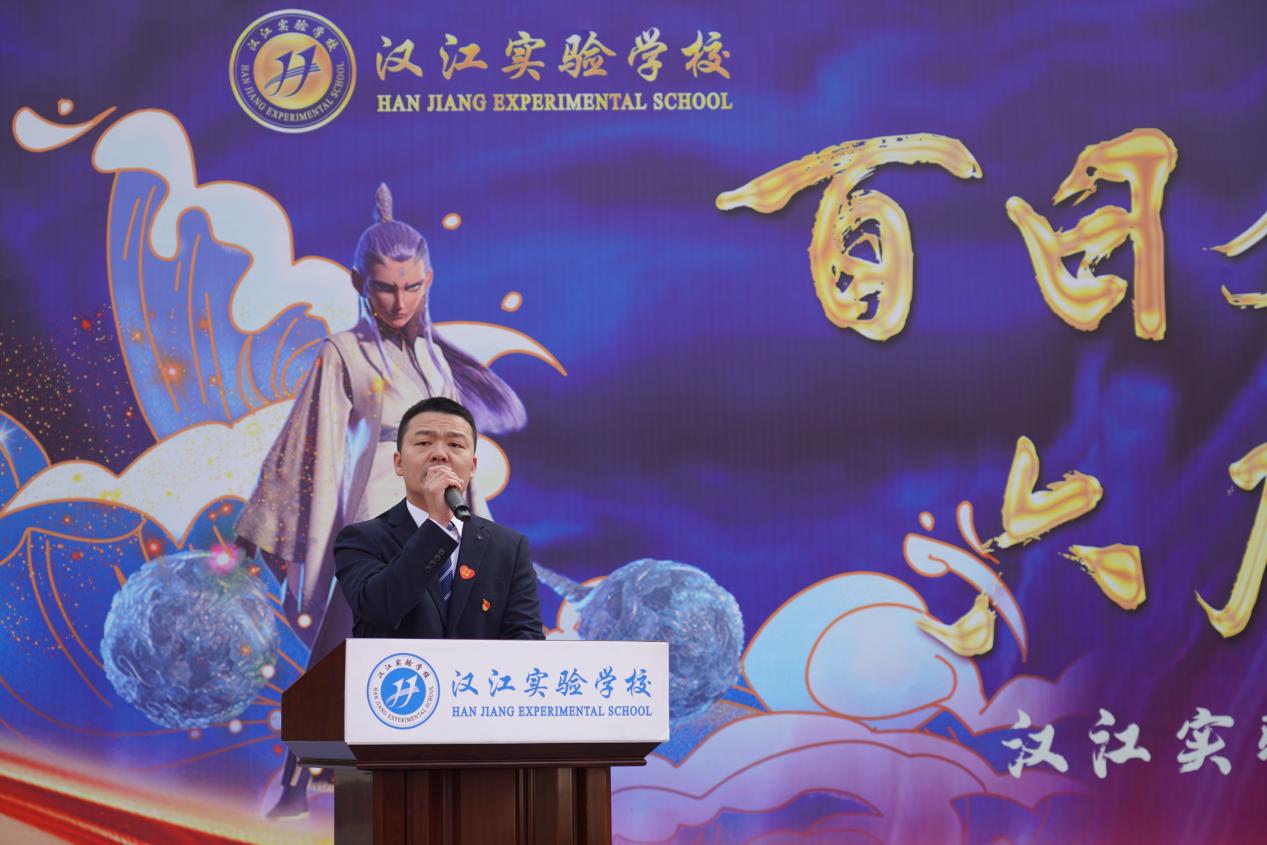 汉江实验学校党支部书记、校长陈磊在致辞中擘画蓝图,鼓励汉实学子在最后的百日里全力以赴,再启新程,以哪吒之勇、敖丙之毅,在中考战场上挥洒汗水,为梦想而战,为青春喝彩,旗开得胜,马到成功!