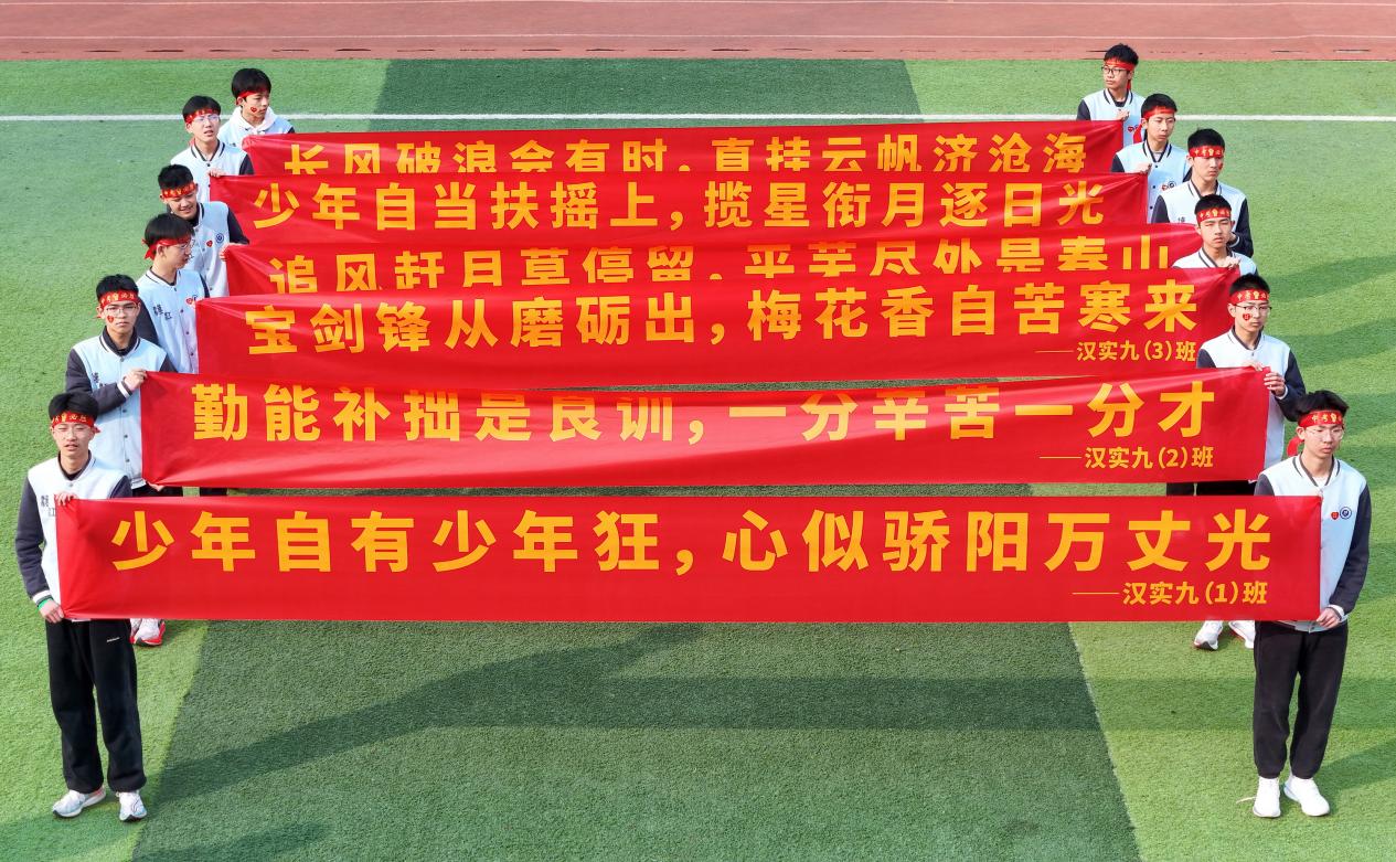 少年前程正似锦,吾辈奋斗正当时。中考倒计时已经启动,相信在全体师生的共同努力和家长的支持下,汉实九年级学子定能以笔为剑、披荆斩棘,创造辉煌!