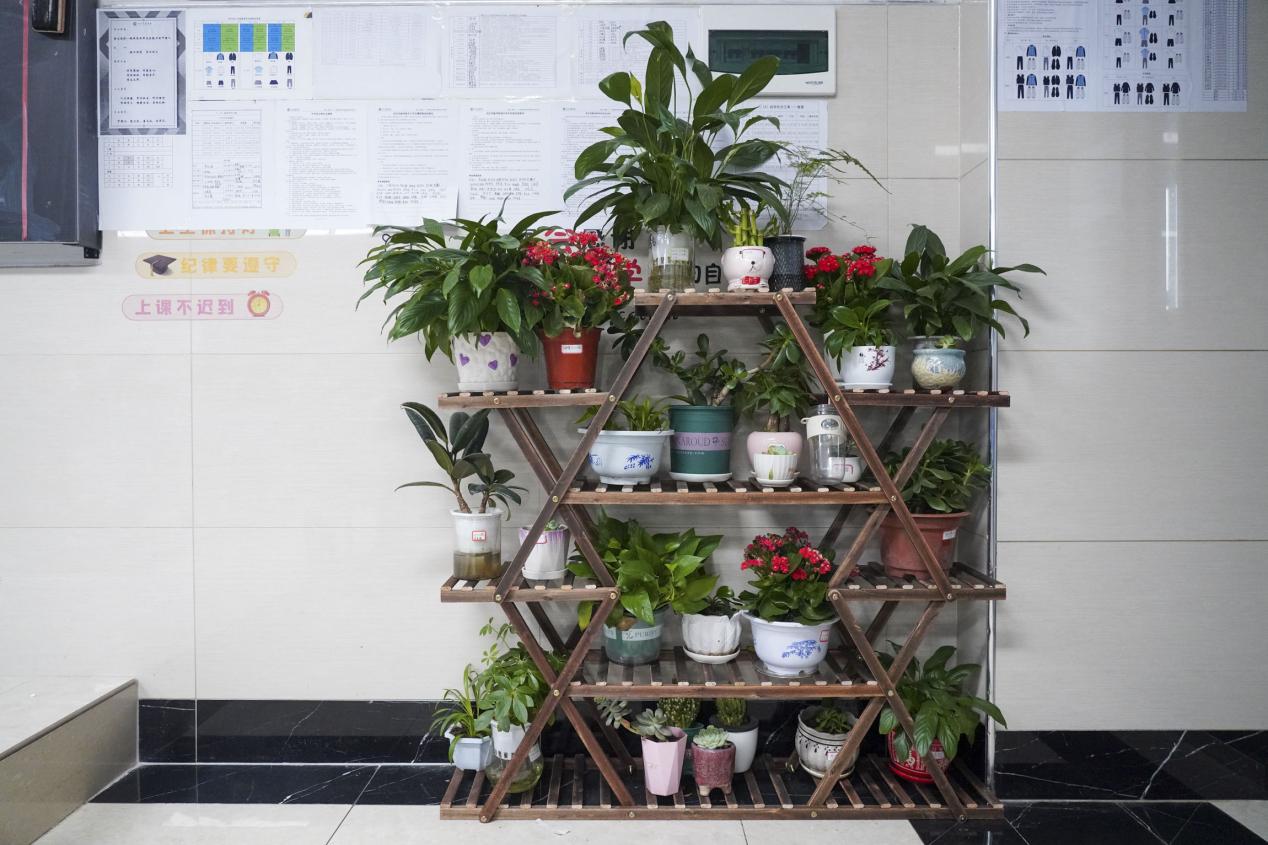 角落里摆放的绿植,不仅美化了环境,还缓解了学生们的视觉疲劳。