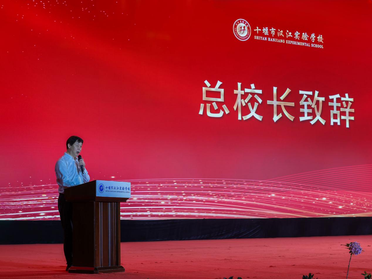 汉江实验学校总校长朱仕竹向各位领导和来宾的到来表示诚挚的感谢,向辛勤付出的家长和老师表示崇高的敬意,向全体学生送上节日的祝福。他表示,汉江实验学校坚定“每个孩子都是我的唯一”的教育情怀,树牢为中华民族伟大复兴奋斗的理想信念,用“仁义礼智信、温良恭俭让”训导习惯,培养个性,打好底色;用过硬的学科教学,筑牢根基,打牢做人底气;用艺术、体育、科技陶德启智、育美增能;用研学体验、劳动实践促进学而时习,知行合一;整合资源,凝聚育人力量,精诚合作,全面育人。同时,我们创办汉江高中,邀请了特级教师马新民校长加入,北师大陈锁明等博士专家的指导,致力于通过全新的育人模式、优良的师资团队、高质量的育人水平在更高层次、更完整体系为每一个汉实学子的幸福美好人生奠定基础。