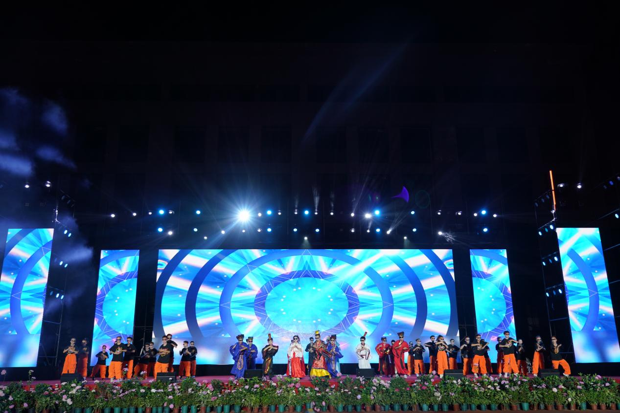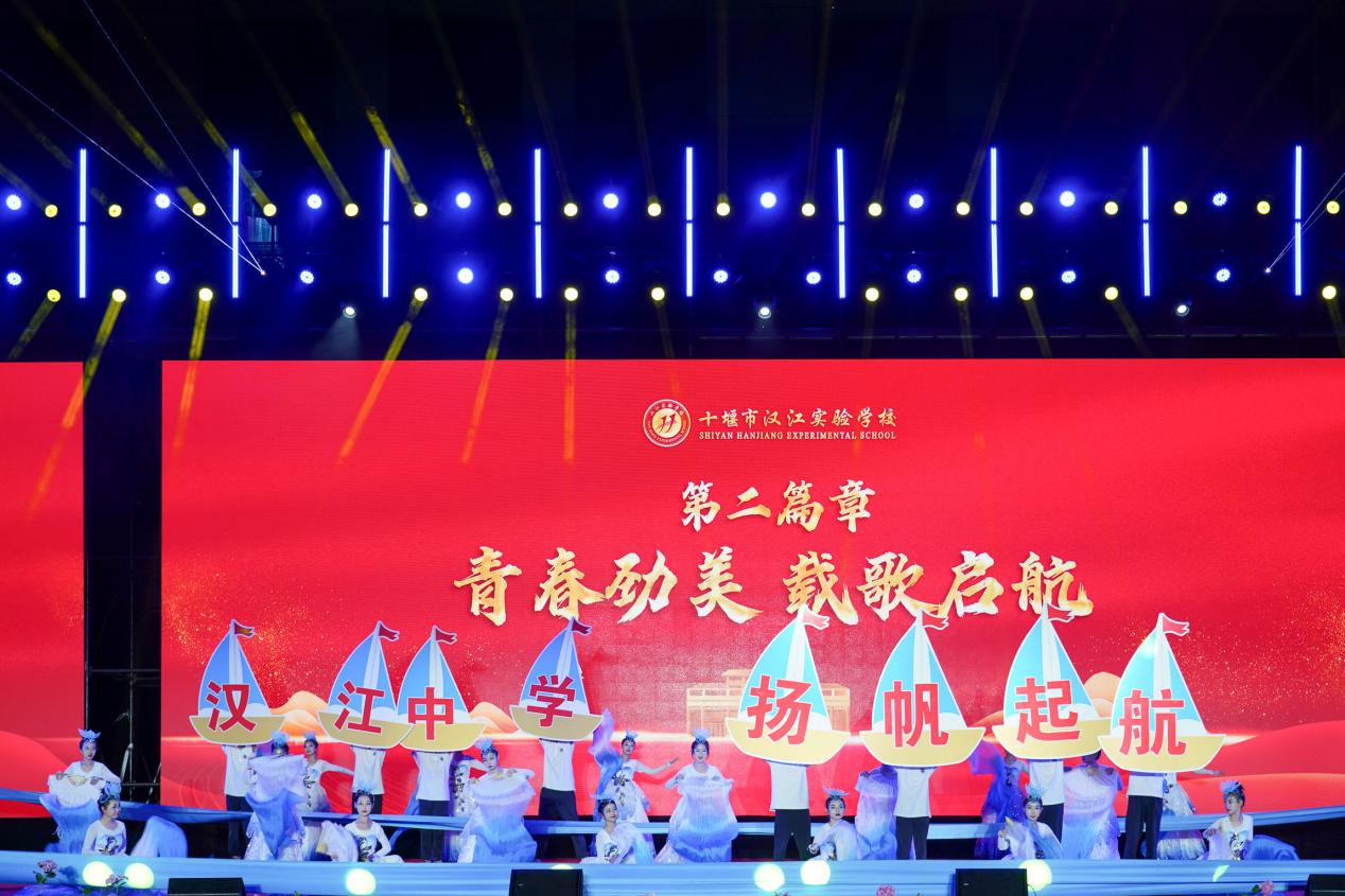 本场晚会开幕仪式由汉江实验副校长张旭东主持,并通过十堰广播电视台客户端、视频号、抖音号、央视屏,汉江实验学校视频号、抖音号等平台全程直播。晚会共三个篇章,分别是“仙山碧水 诗韵中华”、“青春劲美 载歌启航”、“胸怀壮志 誓担大任”。