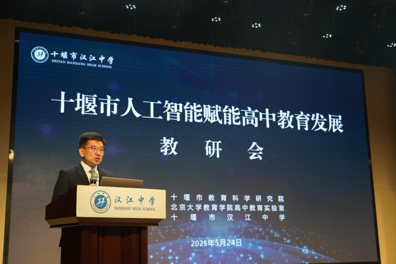 5月24日上午,由十堰市教育科学研究院主办,十堰市汉江中学承办,北京大学教育学院高中教育实验室提供学术支持的全市“人工智能赋能高中教育发展教研会”在十堰市汉江中学盛大举行。