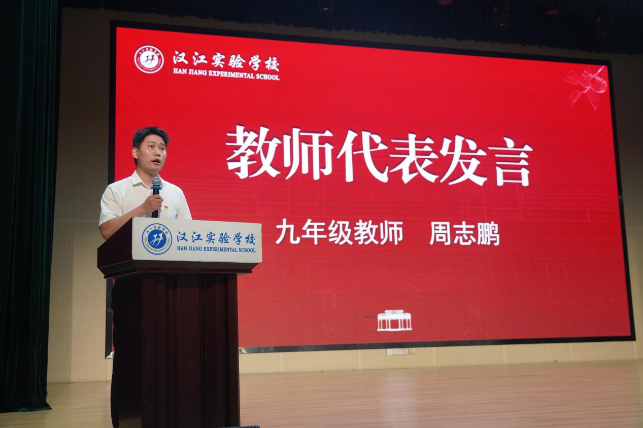教师代表王祥老师和周志鹏老师先后发言。他们结合自身的从教经历,分享了教书育人的感悟与体会,表达了对教育事业的热爱与忠诚,以及对学校培养和支持的感谢,展现了新时代教师的风采与担当。