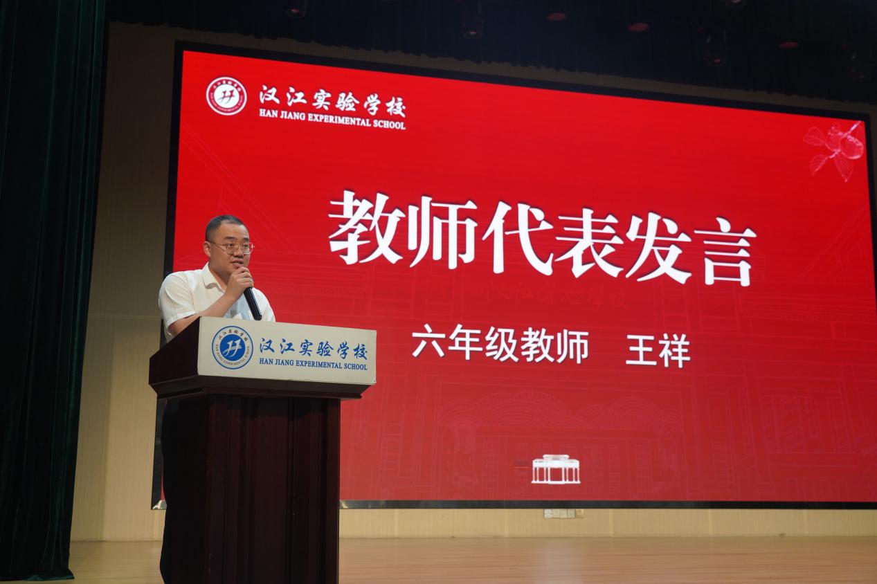 汉江教育党总支书记陈伟致辞。他表示,教育工作者肩负着呵护孩子未来、成就中华民族伟大复兴的光荣使命,我们既要注重中华优秀传统文化的传承,又要让学生掌握现代科学知识;既要厚植爱党爱国的红色精神,又要培养创新实践能力。他勉励全体教师要坚守教育初心,牢记育人使命,以更加饱满的热情投身教育事业,共同创造属于汉实的荣耀。