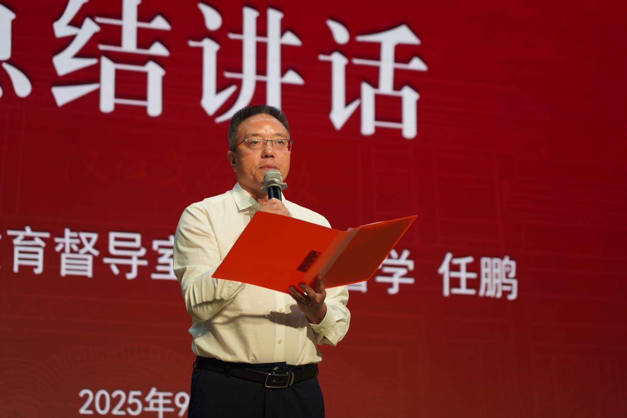 市政府教育督导室副县级督学任鹏作总结讲话。他鼓励同学们在心中培育爱国爱党的“精神种子”、崇军尚武的“情感种子”、居安思危的“忧患种子”、保家卫国的“使命种子”,为祖国的繁荣富强和国防的巩固强大贡献力量。