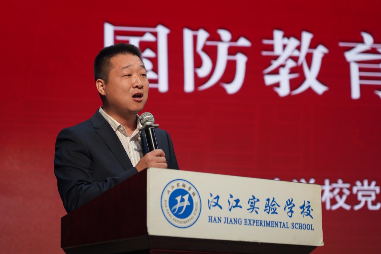9月18日上午,汉江实验学校开展国防动员知识宣传教育活动。市国动办党组成员、副主任樊勋,市政府教育督导室副县级督学任鹏,市教育局大中专毕业生就业中心主任王峰,汉江街办熊家湾社区综治工作负责人赵汗青,汉江教育后勤服务中心主任李勇,汉江实验学校党支部书记、校长陈磊等相关领导出席活动。