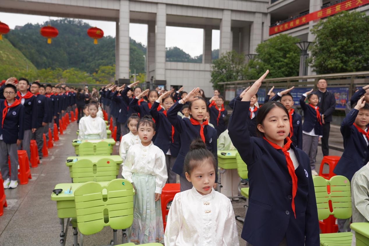 七十名汉实学子光荣地加入了中国少年先锋队。在鲜艳的队旗下,全体新队员庄严宣誓,“强国少年,勇担使命”的誓言响彻校园。