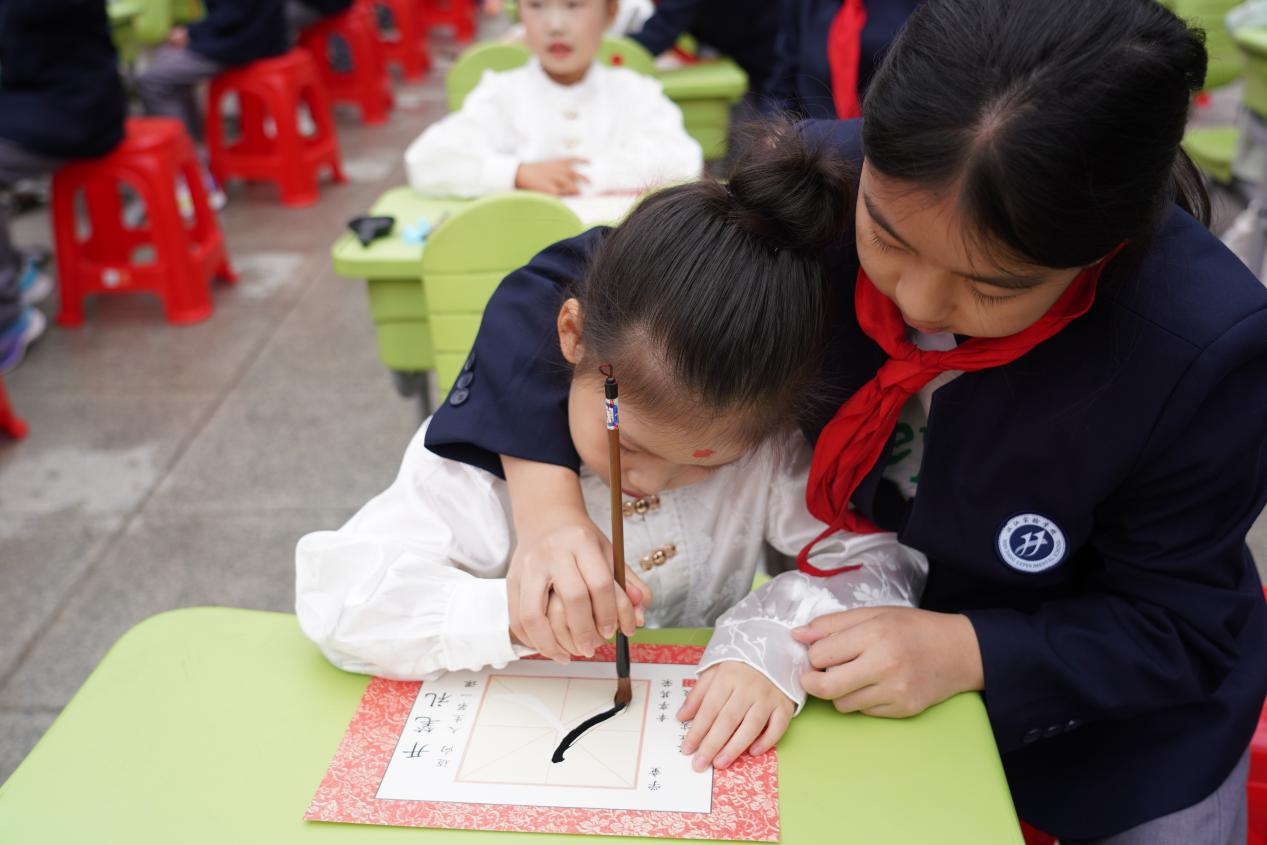 一撇一捺,立于天下。在学长们的指导下,学子们认真书写下一个大大的“人”字,深刻领悟“为人在世,堂堂正正”的道理。