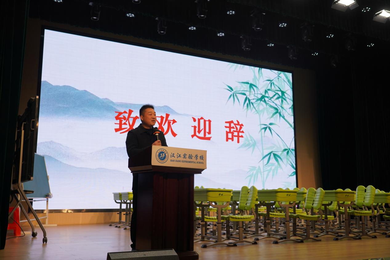 会议伊始,汉江实验学校党支部书记、校长陈磊致欢迎辞。他代表学校对与会嘉宾表示热烈欢迎,并希望老师们珍惜此次研讨机会,在听课中借鉴优秀做法,在研讨中碰撞思维火花,在分享中传递教育智慧,将本次活动的成果转化为实际教学中的具体行动,不断提升自身教学设计与实施能力。